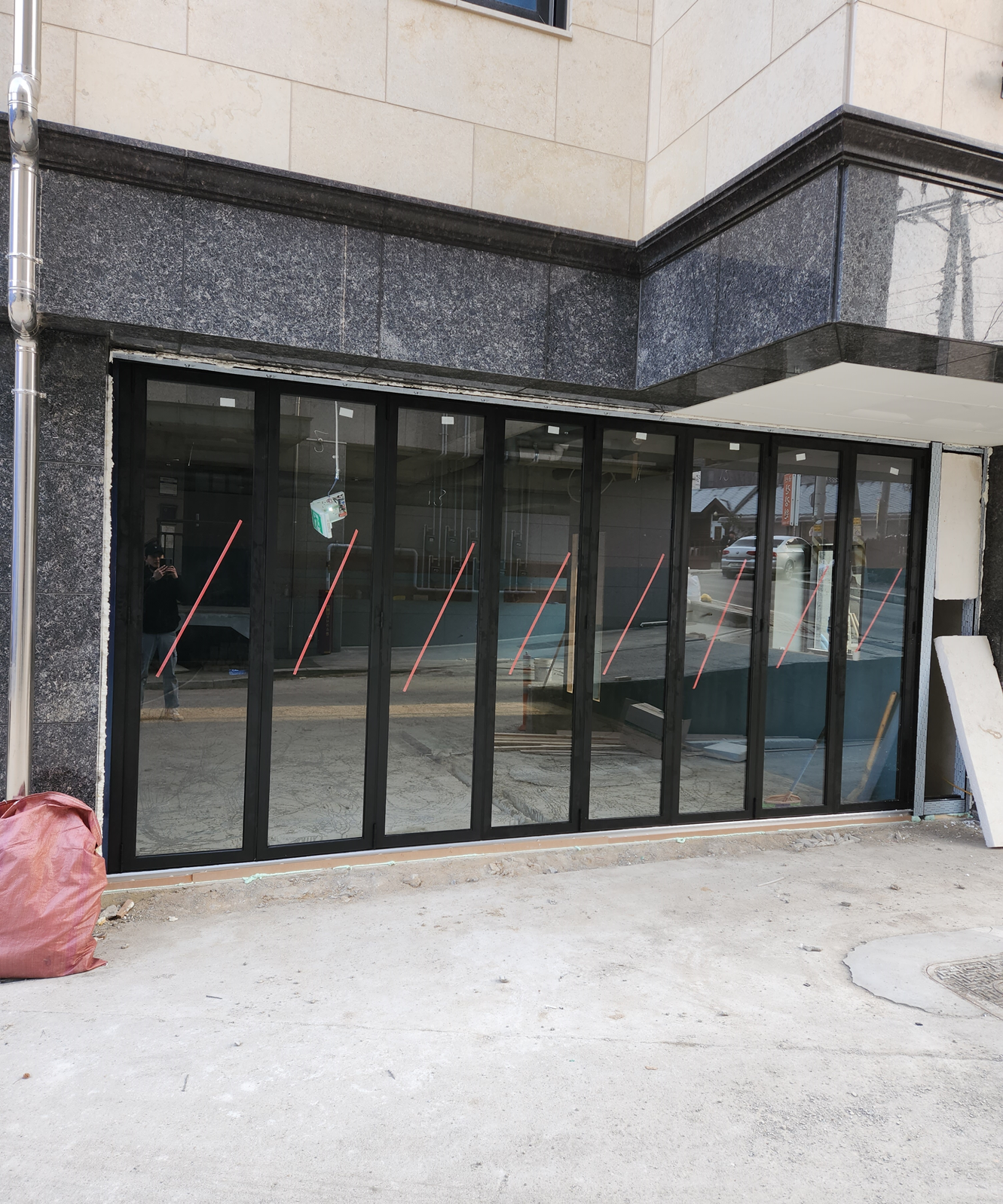 마지막으로 매장 전면은 개방성과 폐쇄성을 모두 고려해 알루미늄 폴딩도어로 시공했습니다.