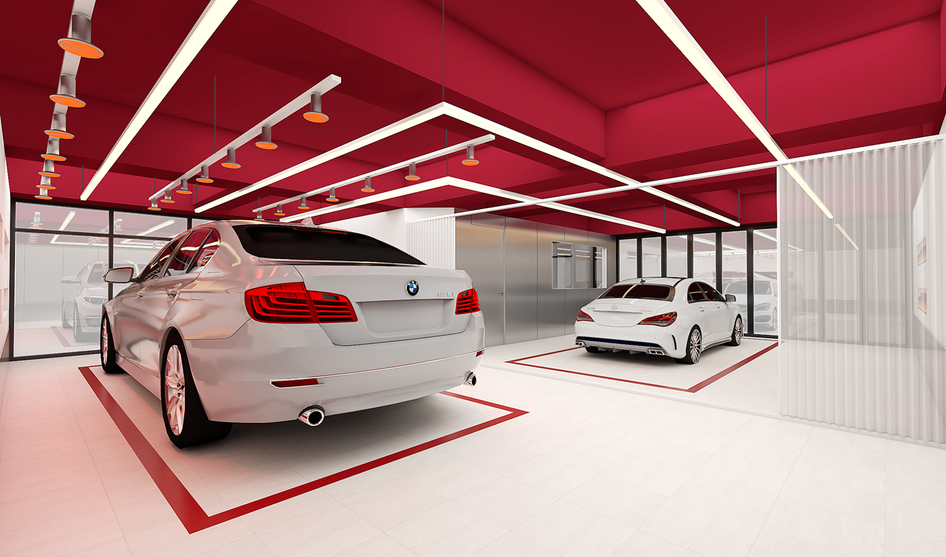 각종 몰딩, 프레임. 포인트 벽 등은 레드 컬러로 포인트 마감하였으며, 외부에서도 눈에 띄는 시인성까지 확보했습니다.