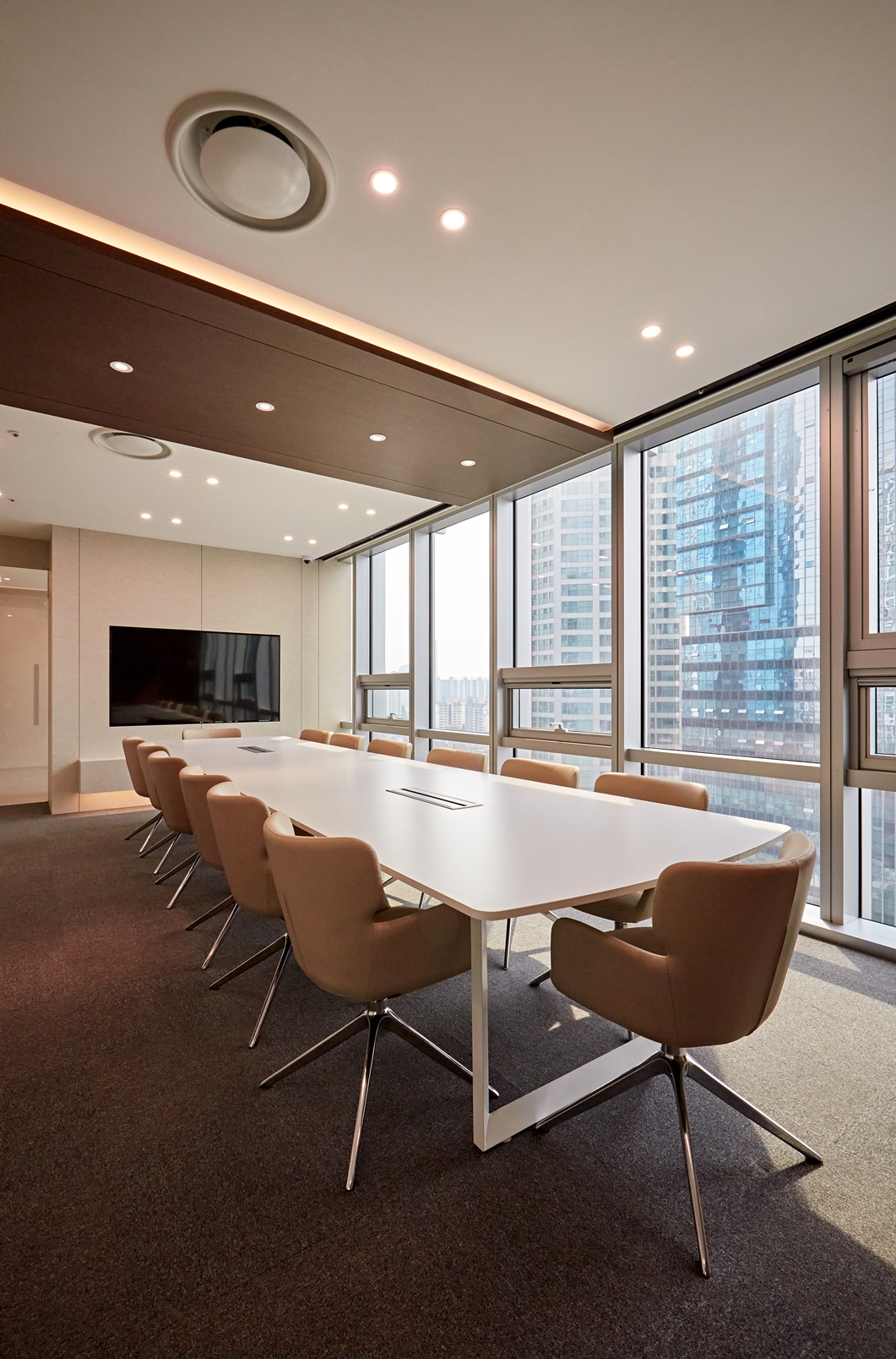 원주인테리어업체는 회의실의 크기와 형태에 맞춰 적절한 가구를 배치하고,