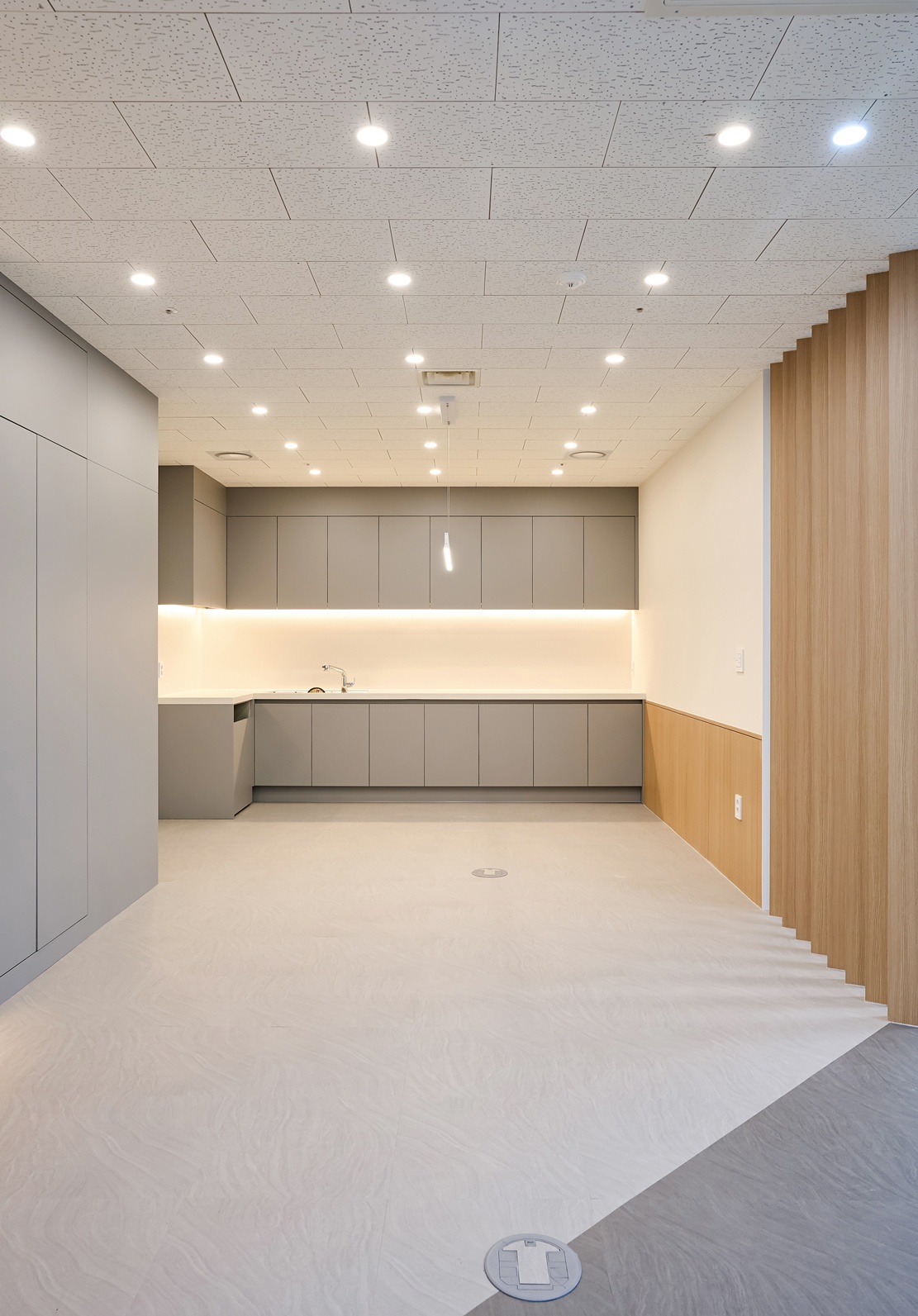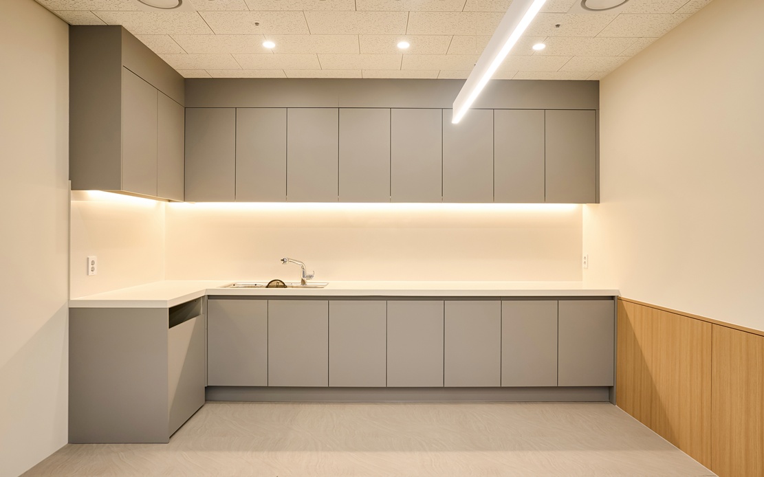 업무공간에서는 집중력을 높일수 있는 차분한 색상을 선택하는 것이 좋습니다. 대표적인 예로는 그레이, 베이지, 네이비 등이 있습니다. 반면에, 휴게실이나 탕비실 같은 휴식공간에서는 밝은 색상이나 파스텔톤을 사용하여 경쾌한 부위기를 연출할수 있습니다.