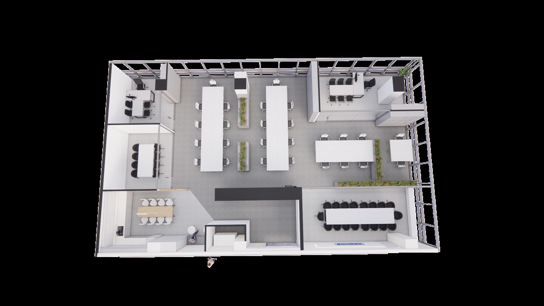 회의실, 휴게실, 작업공간 등 각 공간의 목적에 맞게 레이아웃을 구성하세요.