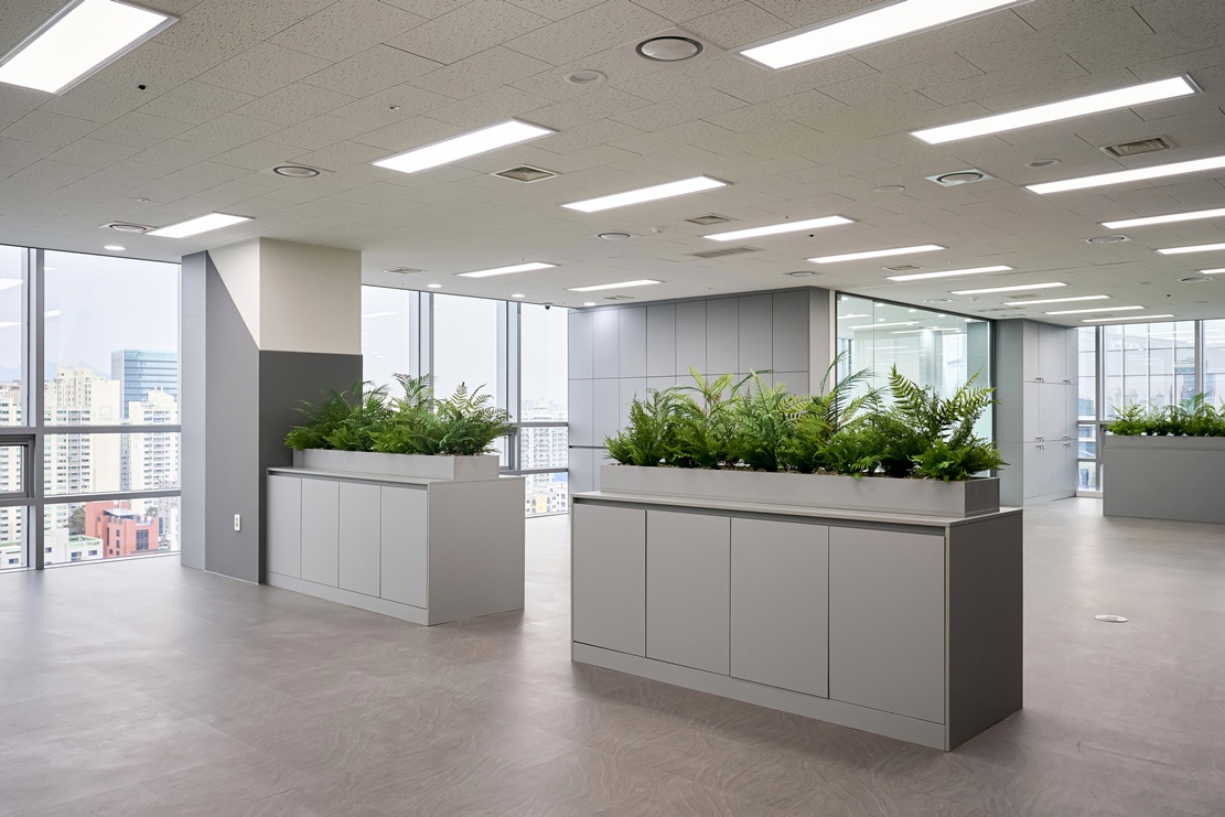 업무 특성에 따라 조명, 가구, 창문 등을 적절하게 선택하여 편안하고 쾌적한 분위기를 조성합니다.
