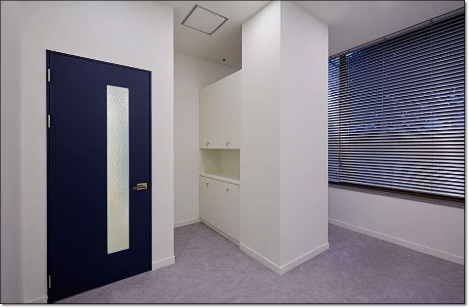 대표실, 회의실, 임원실은 가벽을 세워 개별 사무실로 시공함으로써 만들어진 복도를 통해 내부로 이동하는 동선을 설정했고 복도는 중앙의 독립 사무실 뒤로 이어지면서 전체를 순환할 수 있는 동선이 되면서 동시에 휴게 공간이 되었습니다. 각각의 개별 사무실은 유리 가벽을 적용해 개방감을 줌으로써 답답함을 해소했고 복도와 사무실 내부의 조명의 빛번짐이 서로 보완되면서 필요한 조도를 확보하게 했습니다.