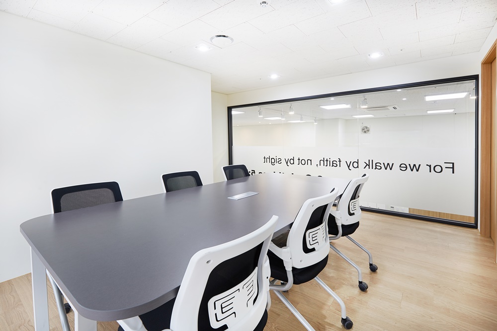 유리 파티션을 적용하여 시야를 확보하면서도 외부 소음은 차단되어 회의나 집중 업무 시에도 쾌적하게 사용할 수 있도록 했어요.