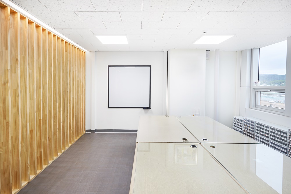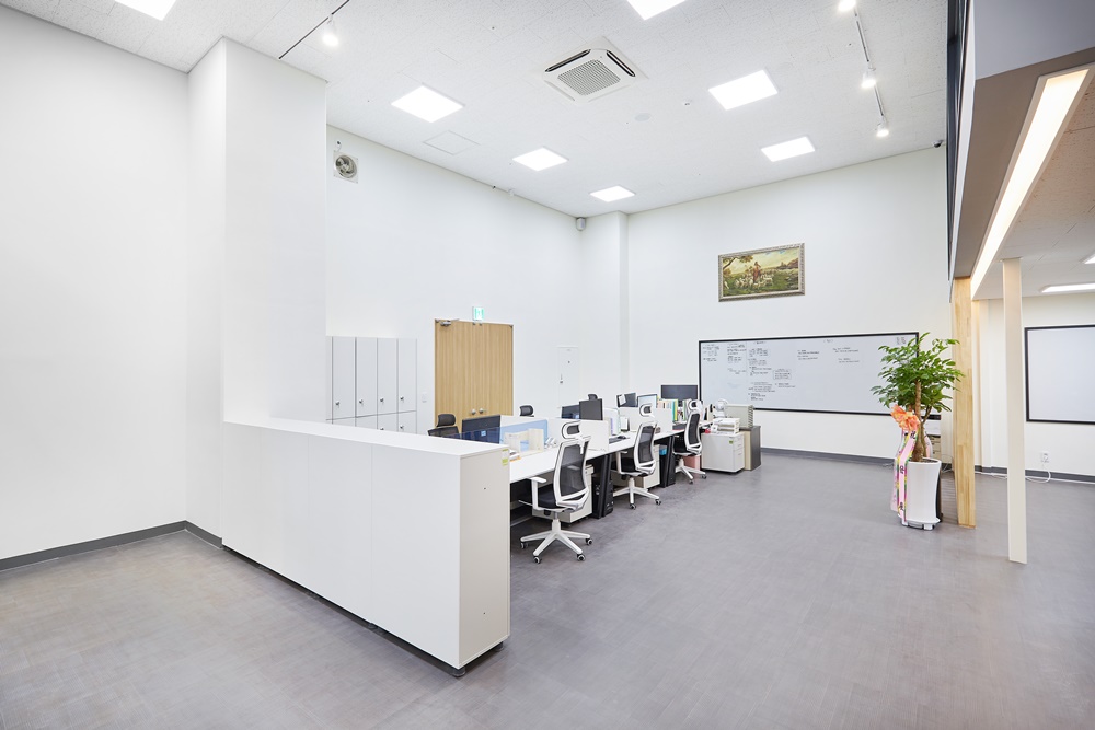 벽체는 우드 패널 마감과 친환경 도장 마감을 병행하여 내구성과 미려한 디자인을 모두 만족시켰고 조명은 매립등과 평판등을 혼합 배치하여 빛 번짐 없이 전체적으로 균일한 밝기를 유지하도록 설계했어요.