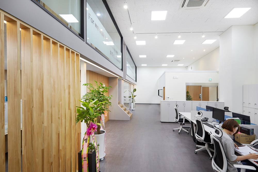 특히 루버 형태의 파티션 디자인은 시야를 완전히 막지 않으면서도 업무 집중도를 높이는 역할을 하며 공간의 리듬감을 더하도록 한 것이죠.