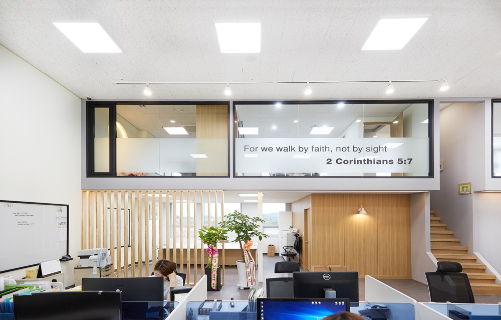 이로 인해 장시간 근무에도 피로감이 덜하며 조명 자체가 공간 디자인의 일부로 작용해 현대적인 오피스 이미지를 강화했죠.