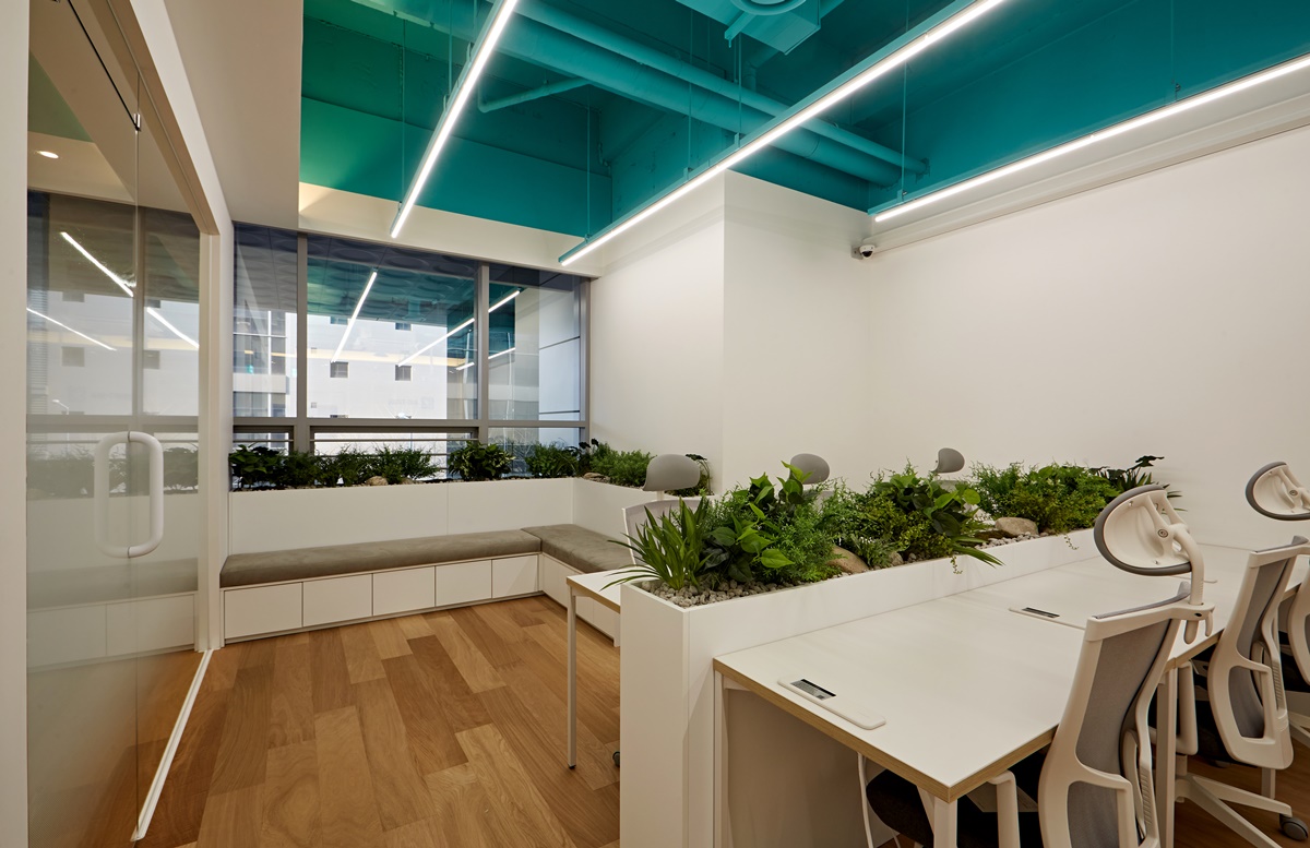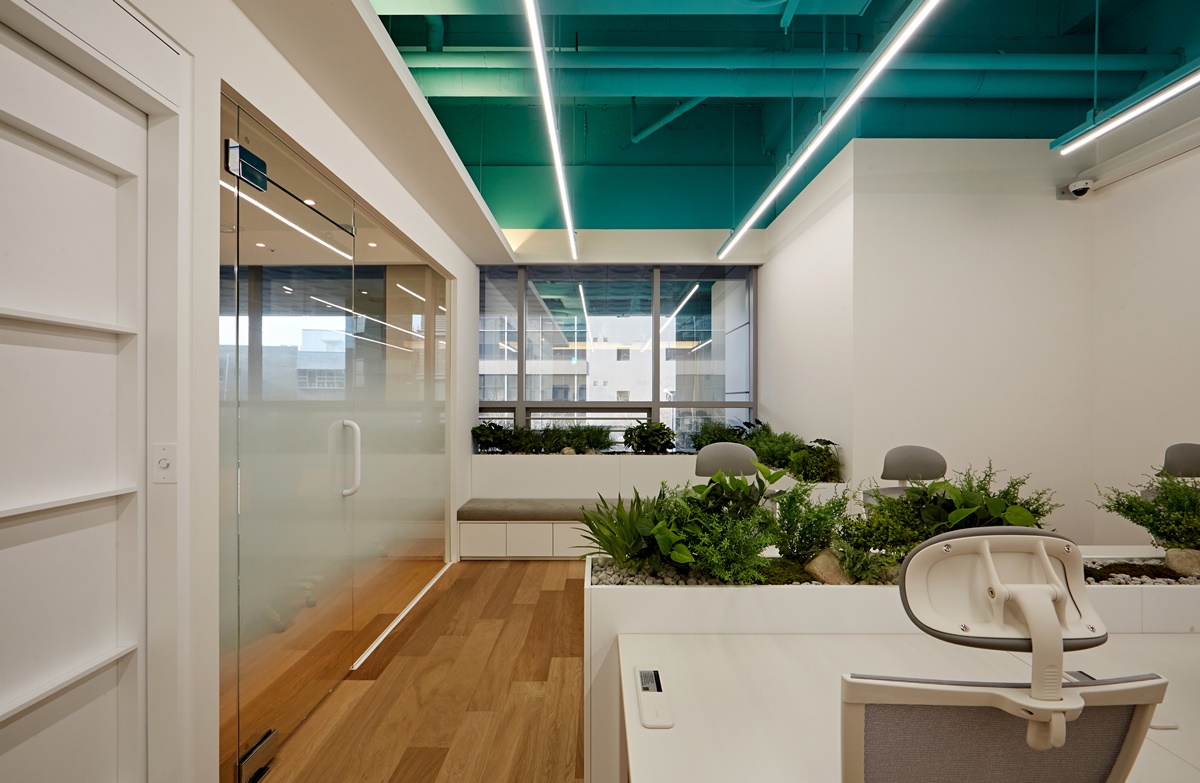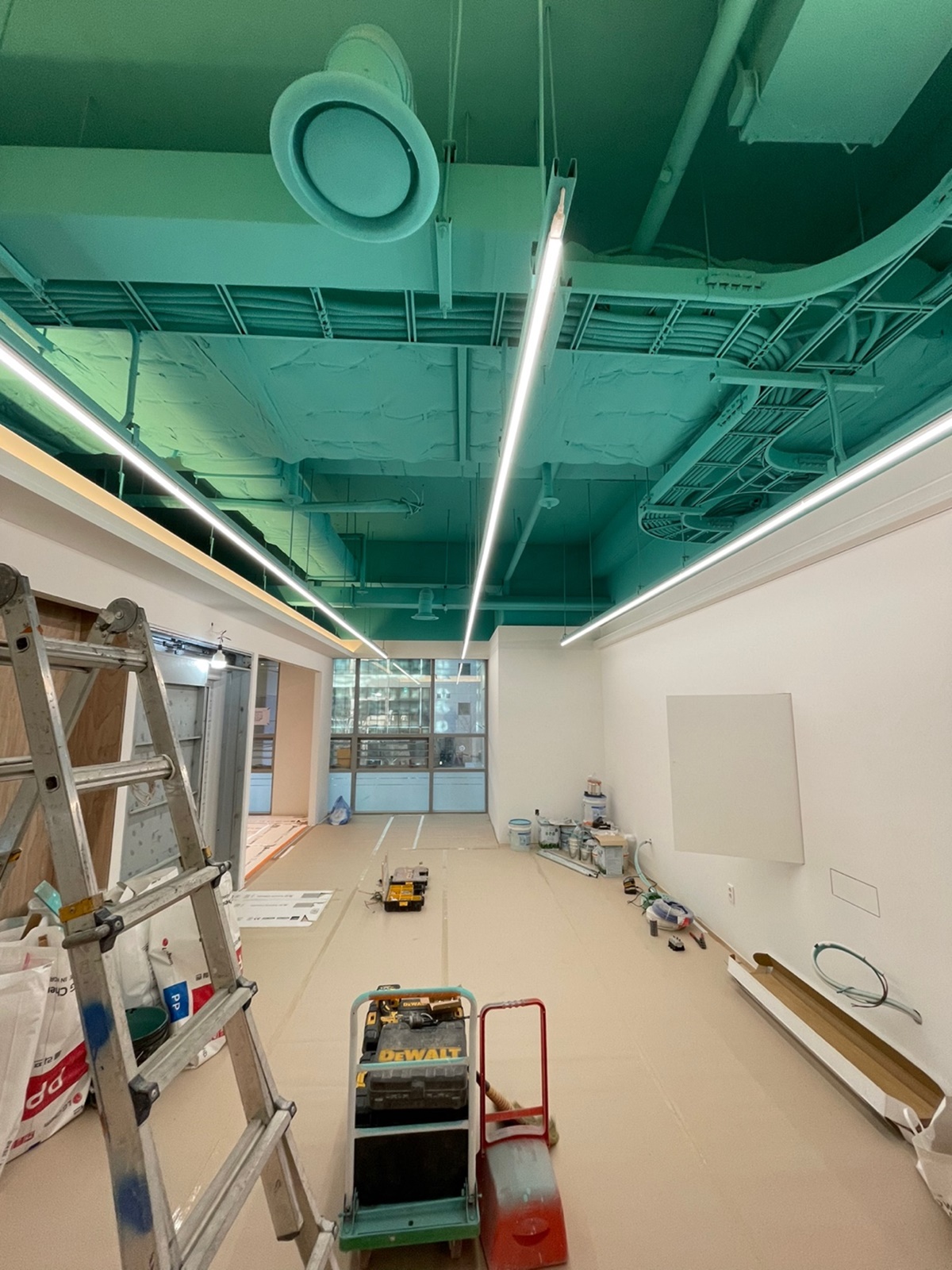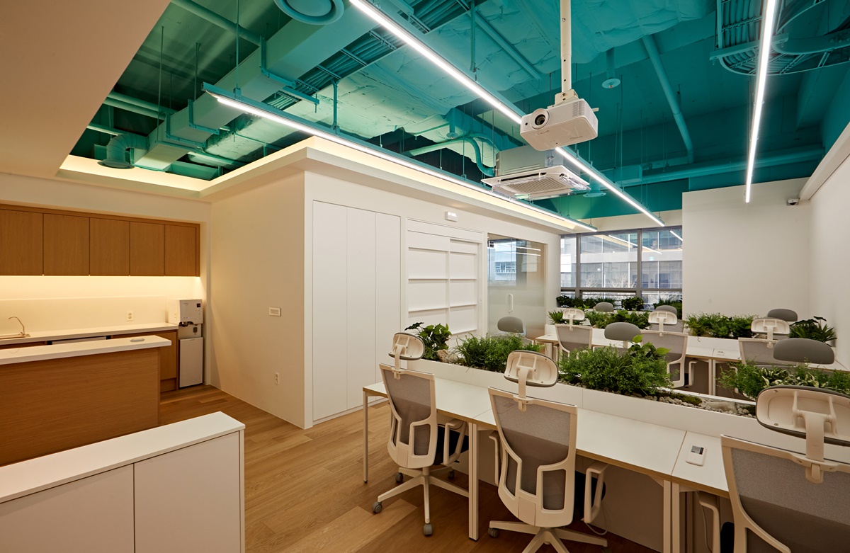 천장에는 라인 조명을 설치하여 조도를 조절할 수 있도록 하였으며,