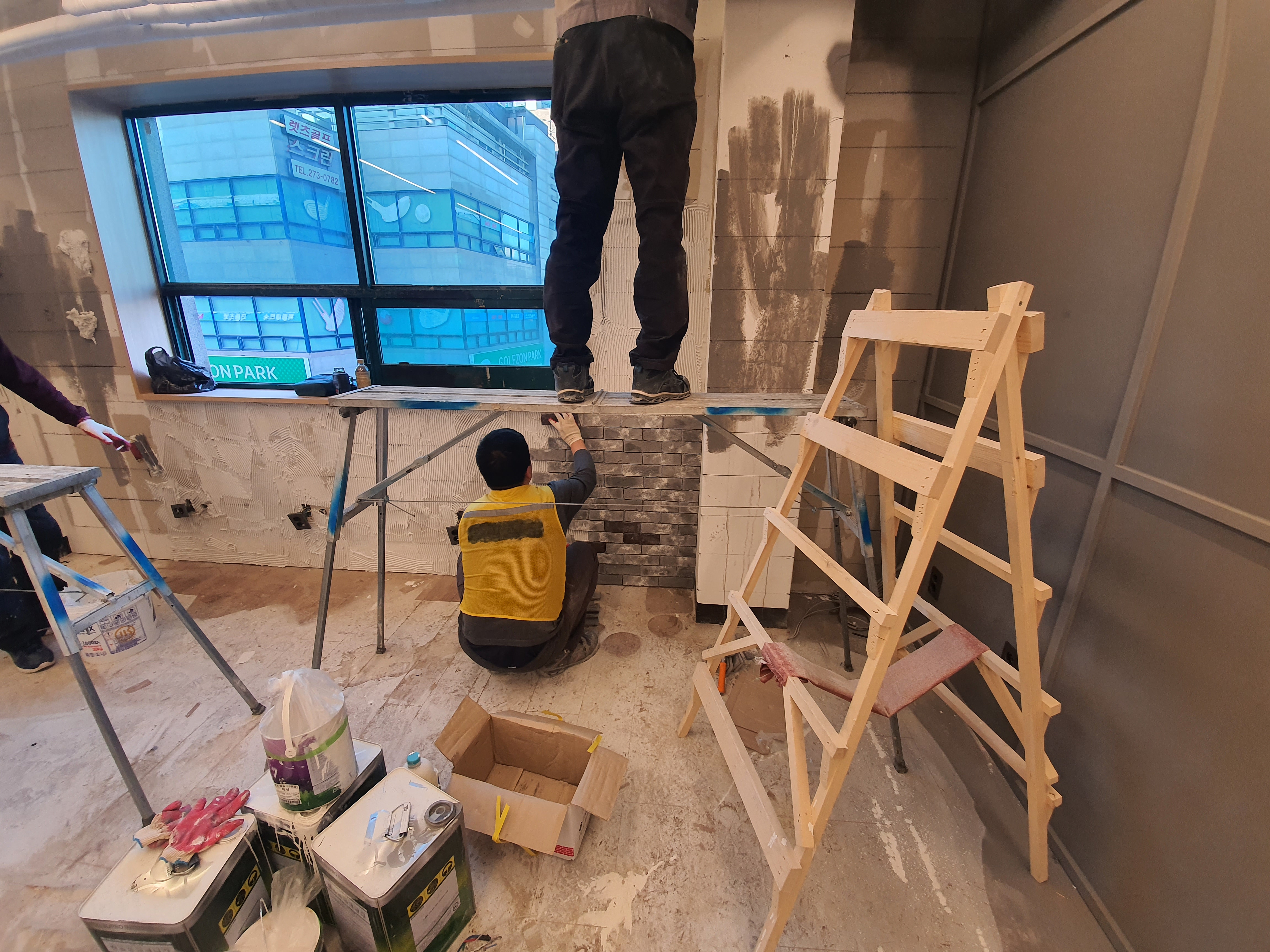 일부 철거 작업과 함께 벽면 뼈대부터
