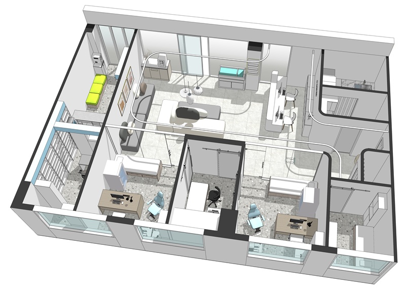 이때 전문가의 조언을 받아 공간을 최대한 활용하면서도 환자와 의자 모두 편안하게 진료를 할수 있는 구조를 만들어야 합니다.