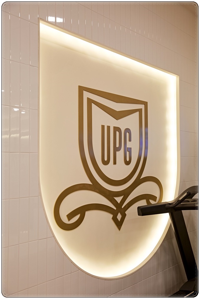 유산소 운동을 할 수 있는 런닝 머신이 있는 공간입니다. 벽면에 로고를 사인물로 시공하면 센터의 정체성과 가독성을 높일 수 있는데요, 벽면을 타공해 단차를 주고 간접조명을 심으면 이천 용인 수지 스크린골프장&헬스장인테리어로 추천할만한 고급스러운 디자인 연출이 가능하죠. 기둥과 내력벽엔 유광타일을 시공해 조명이 반사돼 공간이 더욱 화사해보이도록 의도했습니다.