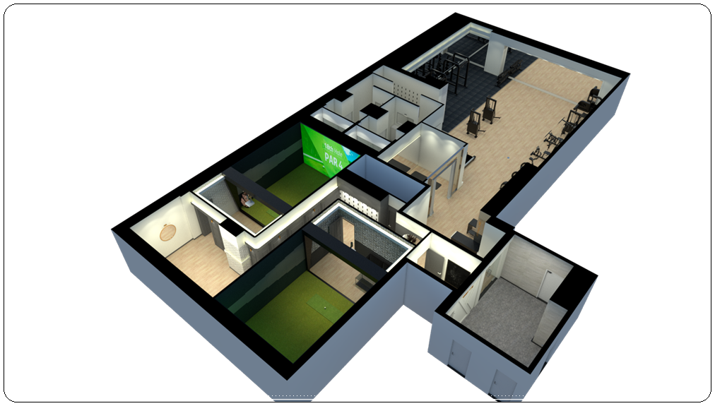 오늘은 이천 용인 수지 스크린골프장&헬스장인테리어 추천! 고급스러운 디자인 연출!로 시공된 사례를 소개해드리겠습니다. 직사각형의 평면에 헬스장과 스크린골프장을 구성하고 운동 전후 씻을 수 있는 탈의실 및 샤워장을 만드는 공사였습니다. 회원제로 운영되는 곳이다보니 고급스러우면서 프라이빗한 분위기로 인테리어하는 것이 중요했기 때문에 헬스장과 골프장의 영역을 명확히 나눠 동선을 깔끔하게 계획했습니다.