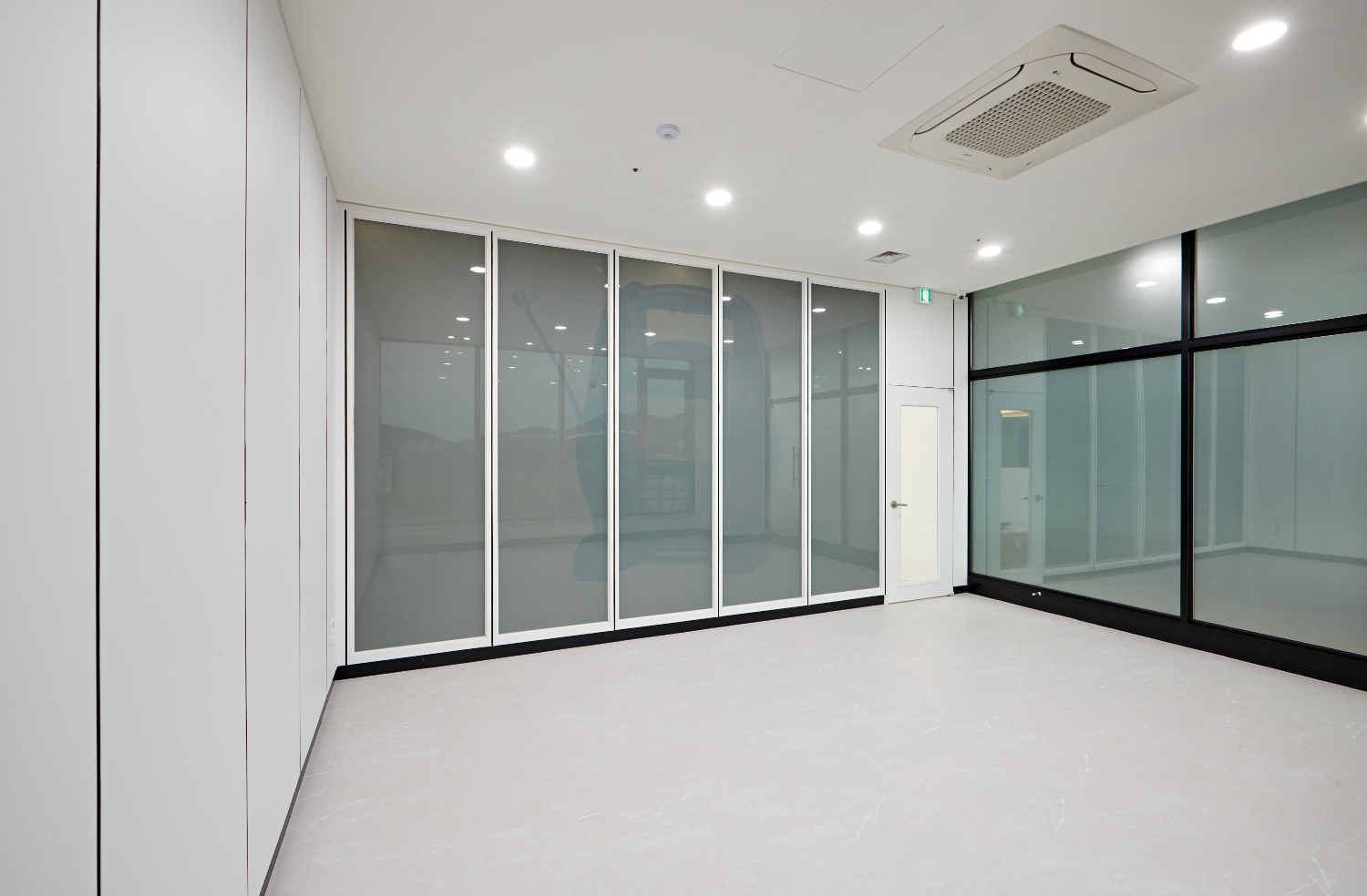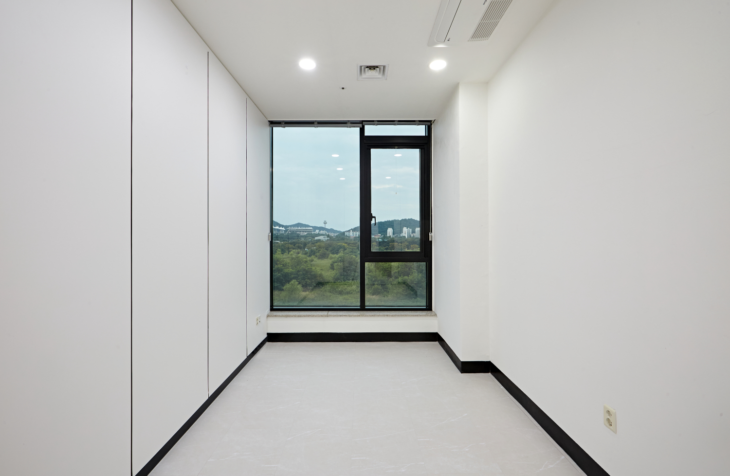 리셉션 뒤쪽의 문으로 들어서면 개별 공간을 마주할 수 있습니다. 이곳에서는 실질적인 업무가 이뤄지고 다른 업체와의 미팅이나 다양한 사무 업무를 볼 수 있는데요. 한 쪽 벽면이 통창으로 되어 있어 개방감을 느낄 수 있고 수납 공간을 넉넉히 마련하였습니다.