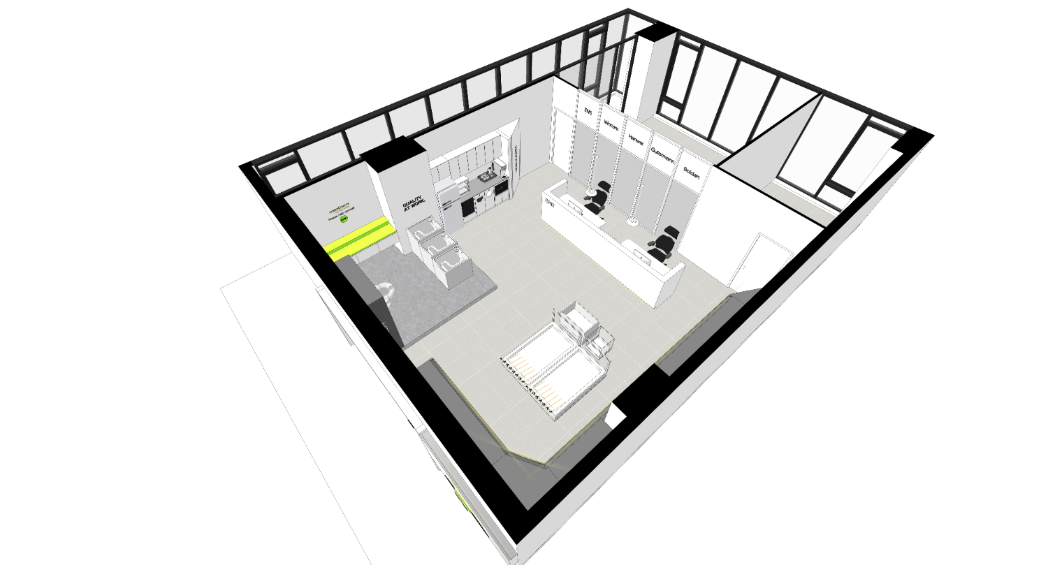 이번 인천사무실인테리어 현장의 전체 조감도입니다. 복잡하지 않고 심플한 구조가 특징이며 한 눈에 모든 공간을 볼 수 있는만큼 센스있으면서도 심플한 미니멀 인테리어를 원하셨습니다.