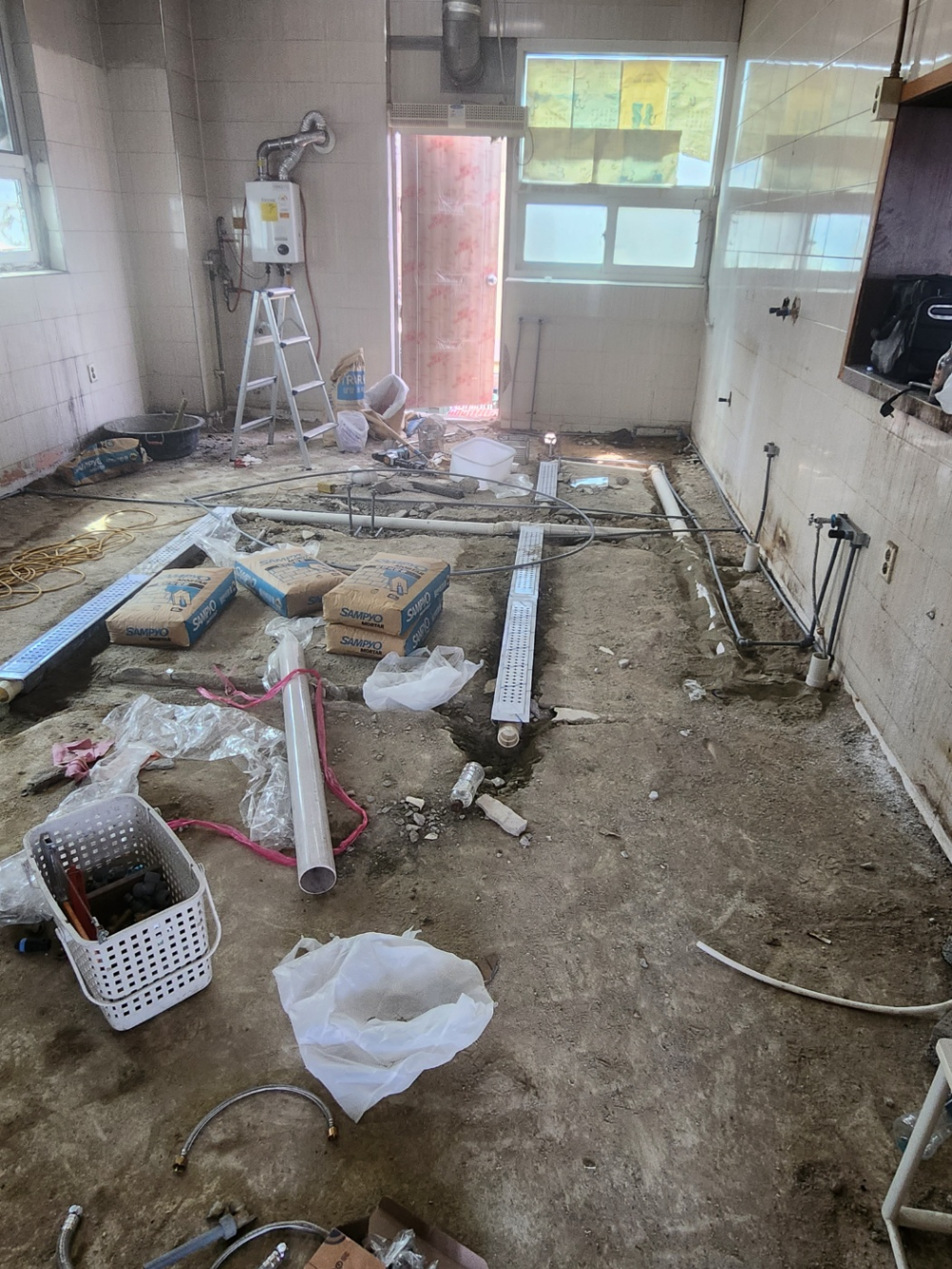 배수라인설치과정에서는 배관