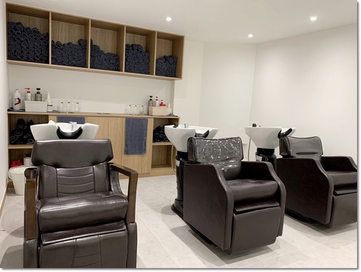 가구 인테리어의 뒷 부분 입니다. 미용실의 전체적인 톤과 분위기가 계속해서 이어지며 가구 인테리어 또한 베이직 톤의 쇼파 뒤에는 똑같이 베이직톤의 테이블과 의자를 설치하였습니다. 만약 순서를 기다리거나 작업을 받으시는 고객 분들이 있다면 잡지나 책을 읽으면서 대기 하실 수도 있도록 뒤에 작업 기구들도 설치가 되어있으니 안심하시고 휴식을 취하셔도 됩니다.