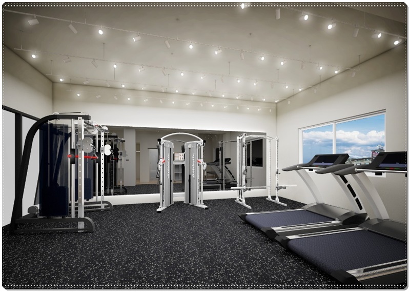 제일 중요하다고 할 수 있는 운동공간의 모습입니다. 여느 헬스장과 같이 운동 공간은 운동을 하는데 있어서 매우 집중도를 요하는 공간입니다. 그렇기에 블랙톤과 같은 어두운 톤을 사용하여 기구와 디자인을 인테리어함과 동시에 위에는 조명을 달아서 너무 어둡지는 않고 집중도를 높일 수 있도록 배치하였습니다.