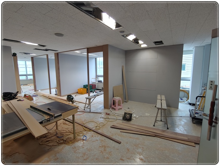 오늘은 인천 남동구 jk루체스타 사무실인테리어 로비 대표실 회의실 시공사례를 소개해드리려고 합니다. 최종 디자인이 확정이 되면 공사를 시작하게 되는데요, 특별한 철거나 원상복구가 없다면 목공사를 시작하게 됩니다.