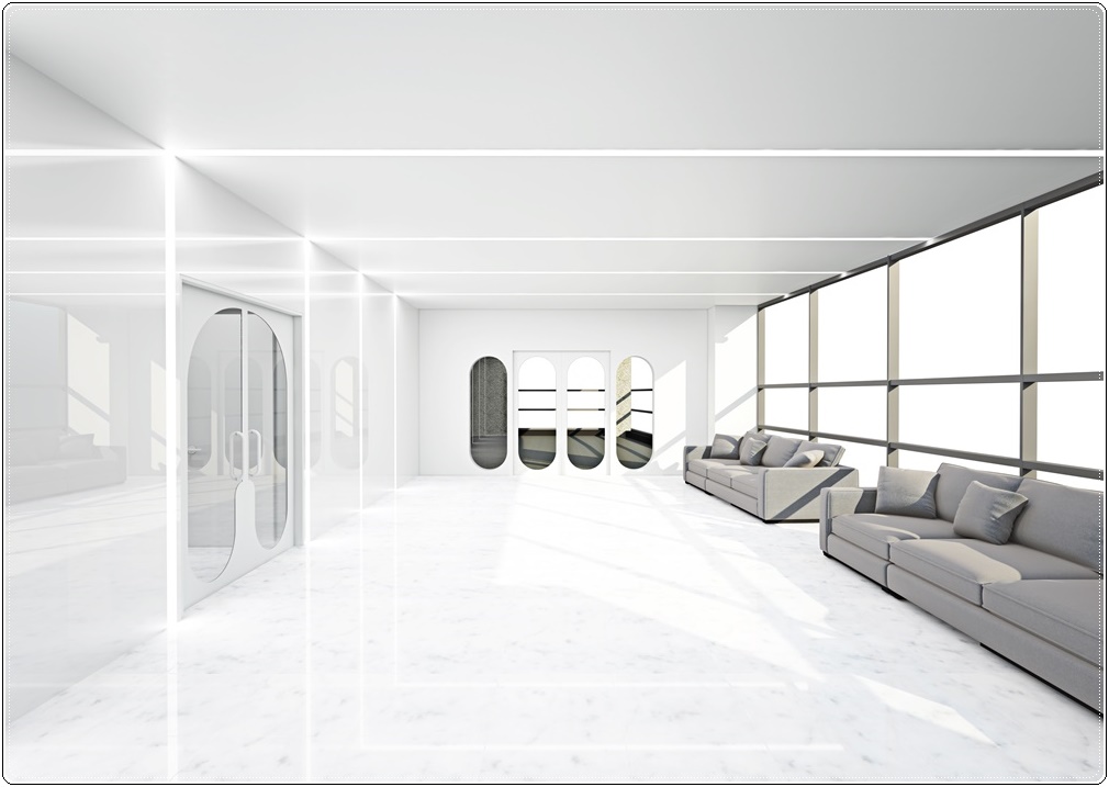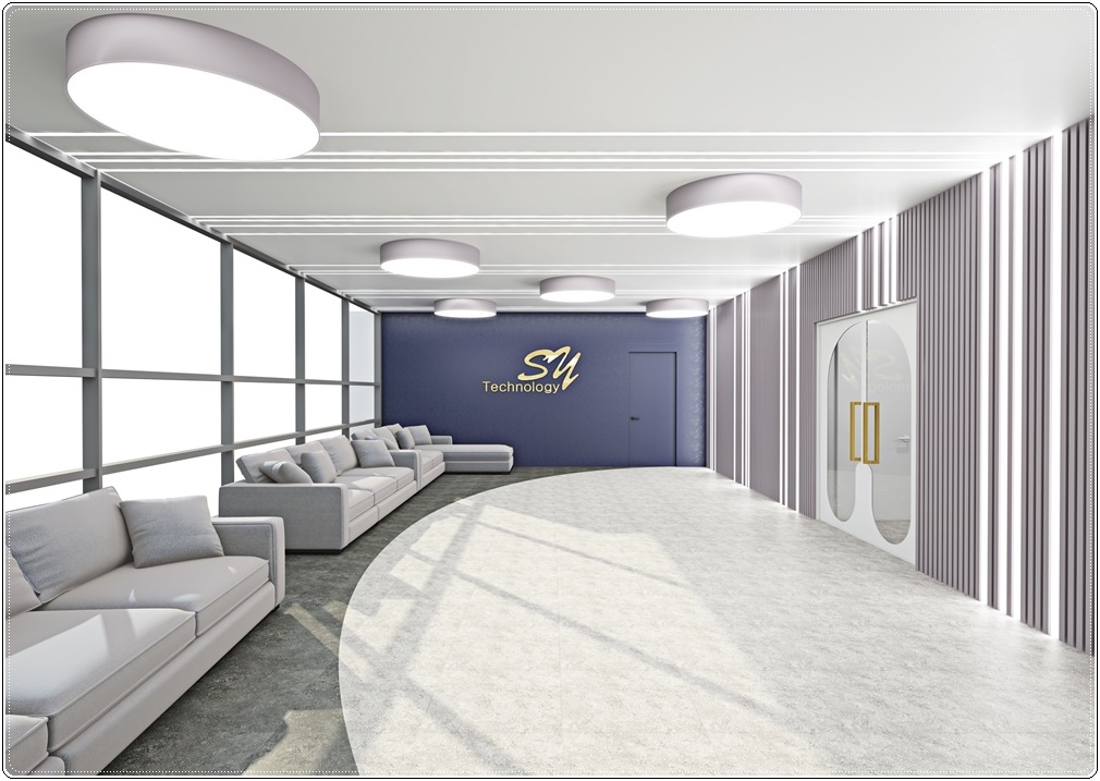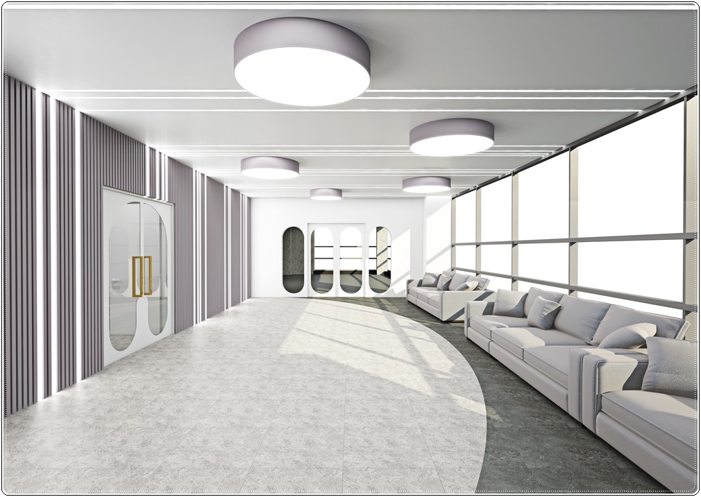 로비 공간은 브랜드 홍보 공간으로 활용해 세련되면서도 참신한 디자인으로 연출되는 것이 좋습니다. 특히, 이번 제안은 대기 및 휴게 공간으로 활용되기 때문에 회사의 브랜드 이미지를 자연스럽게 노출하면서 쾌적하고 편안한 공간으로 디자인하고 벽면과 천장의 라인을 따라 간접 조명을 적용해 첨단의 브랜드 이미지를 나타냈습니다.