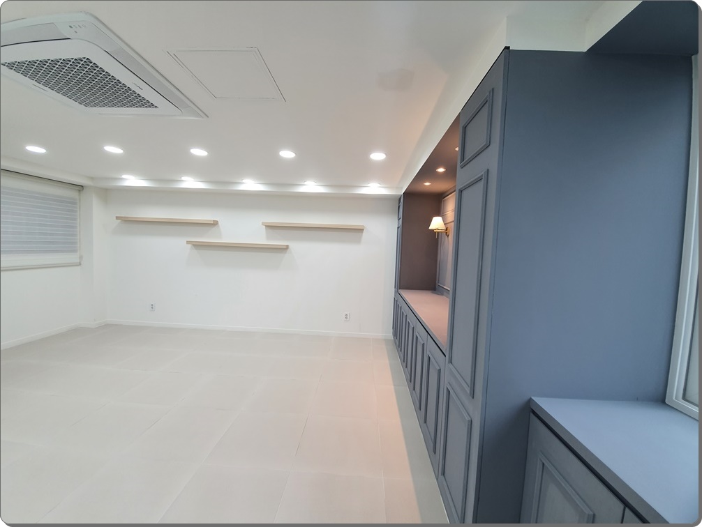 기성제품은 제고가 많아 구하기도 쉽고 단가도 저렴하기 때문에 예산을 세이브할 수 있으므로 원하신다면 부담없이 말씀해주세요. 채광이 좋은 창문을 그대로 활용해 자연광이 최대한 들어올 수 있도록 했고 벽면에 전구색 벽부등을 시공해 고급스러움을 한층 더 강조했습니다.