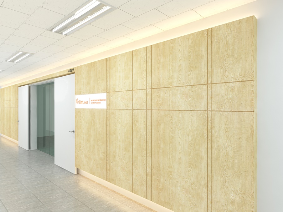 리셉션 공간에는 방문객을 맞고 안내하는 인포메이션과 대기 공간을 함께 계획해 외부 방문객을 통제하고 동선을 제한할 수 있도록 했습니다. 인포테이블은 외부 익스테리어의 우드 소재를 자연스럽게 이어받아 통일성을 이루도록 했고 회사명과 로고를 적용하면 회사의 정체성과 가독성을 높일 수 있습니다. 인포메이션 공간만 우물형 천장으으로 계획해 조명을 함께 시공하면 층고가 높고 화사하게 조성할 수 있어 좀 더 쾌적한 분위기를 느낄 수 있습니다.