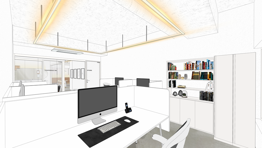 독립형 공간은 전체적으로 화이트 벽면, 진그레이 바닥, 라인 조명을 적용해 전체 디자인과 통일성을 주었고 각 팀의 효율적인 업무를 위해 특성에 맞는 책상 배치를 제안드렸습니다. 대표실이나 임원실 인테리어 역시 전체 디자인과 통일하되 우드톤을 적절히 배치해 내추럴하고 고급스러운 분위기를 조성해 일반 사무공간과 차별성을 두었습니다.