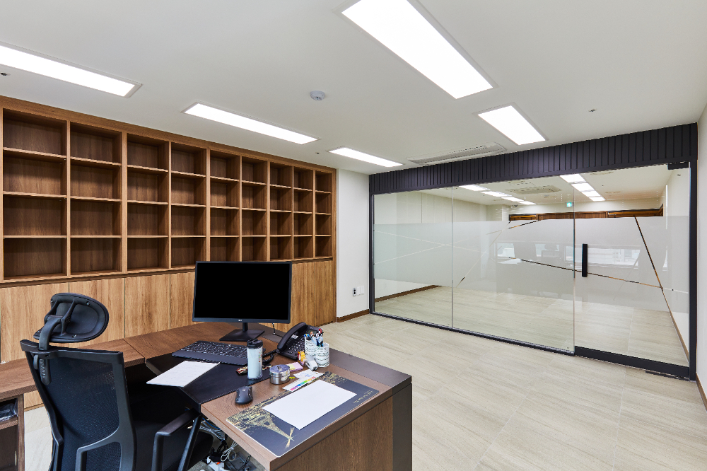 대표실 역시 목공 작업으로 맞춤형 가구를