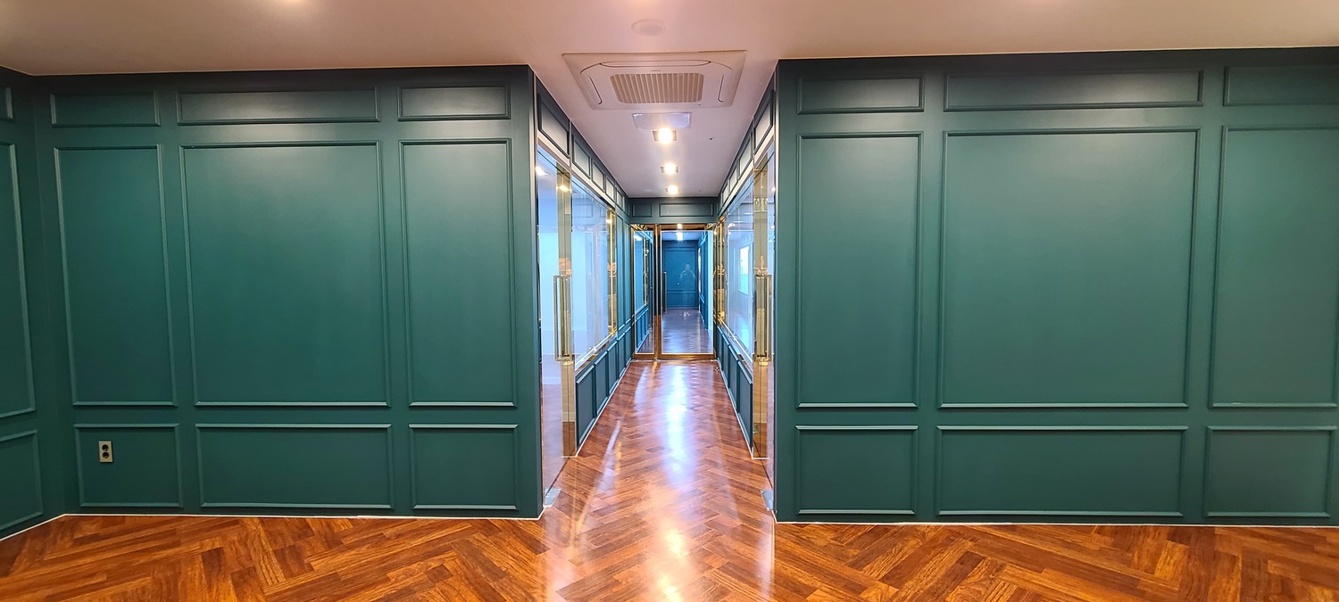 오늘 소개드릴 현장은 딥한 그린 컬러가 인상 깊은 곳입니다. 요즘은 화이트 인테리어가 대세라고는 하지만 클래식한 멋을 가지고 있으면서도 오래보아도 질리지 않고 집중도를 높여주는 그린 컬러도 많이 활용되고 있는데요. 생동감있는 3D 디자인 제안 이미지부터 실제 현장까지 차례로 소개 드리겠습니다.
