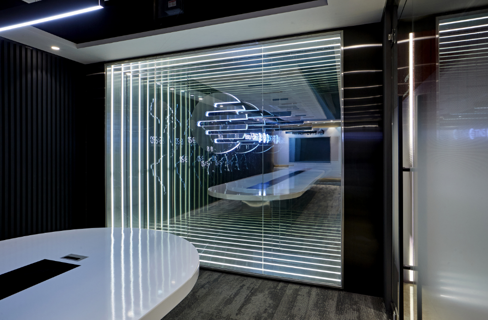 컨퍼런스룸에는 화려한 조명 디자인으로