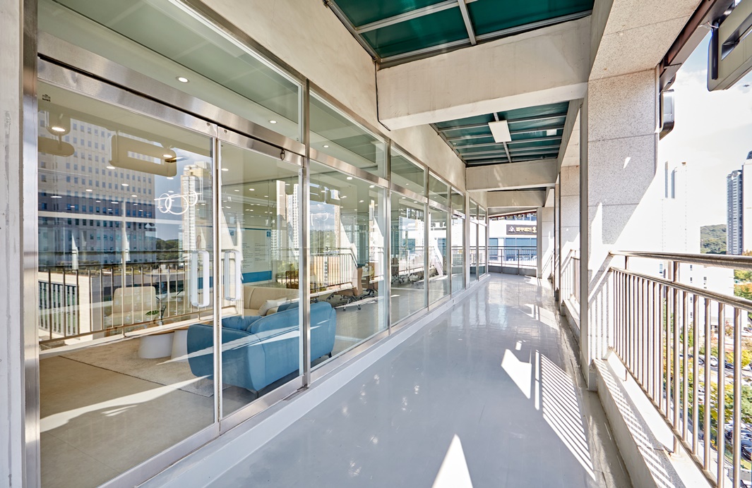 유리가벽은 시각적으로 공간을 넓어 보이게 하고,