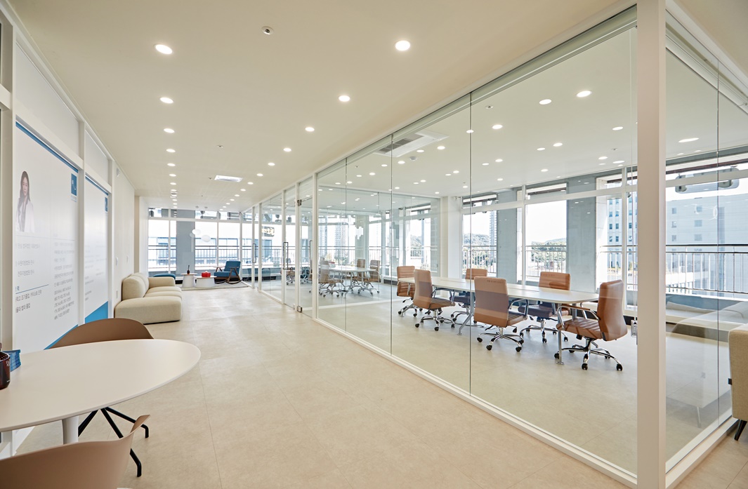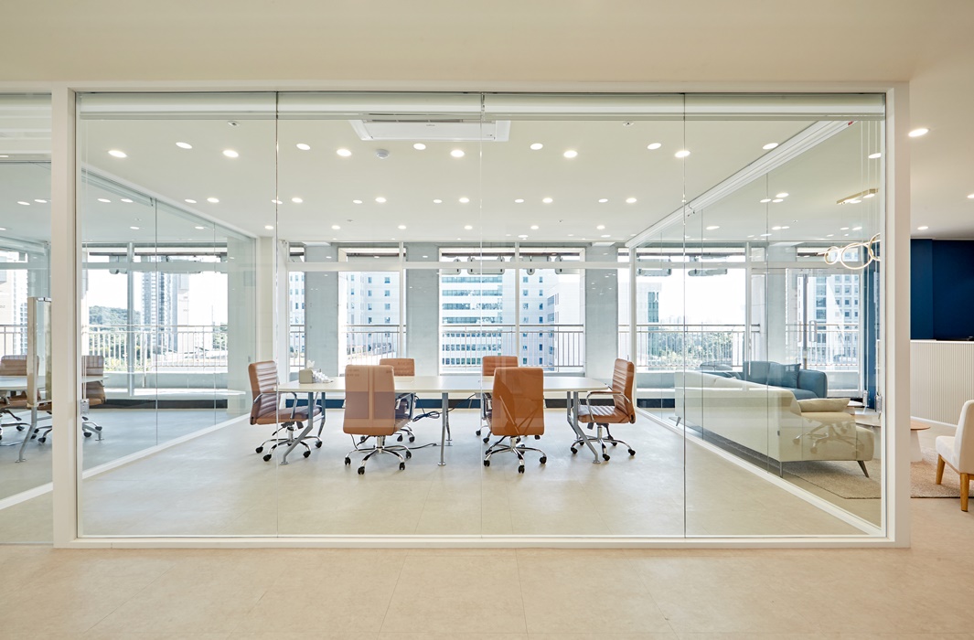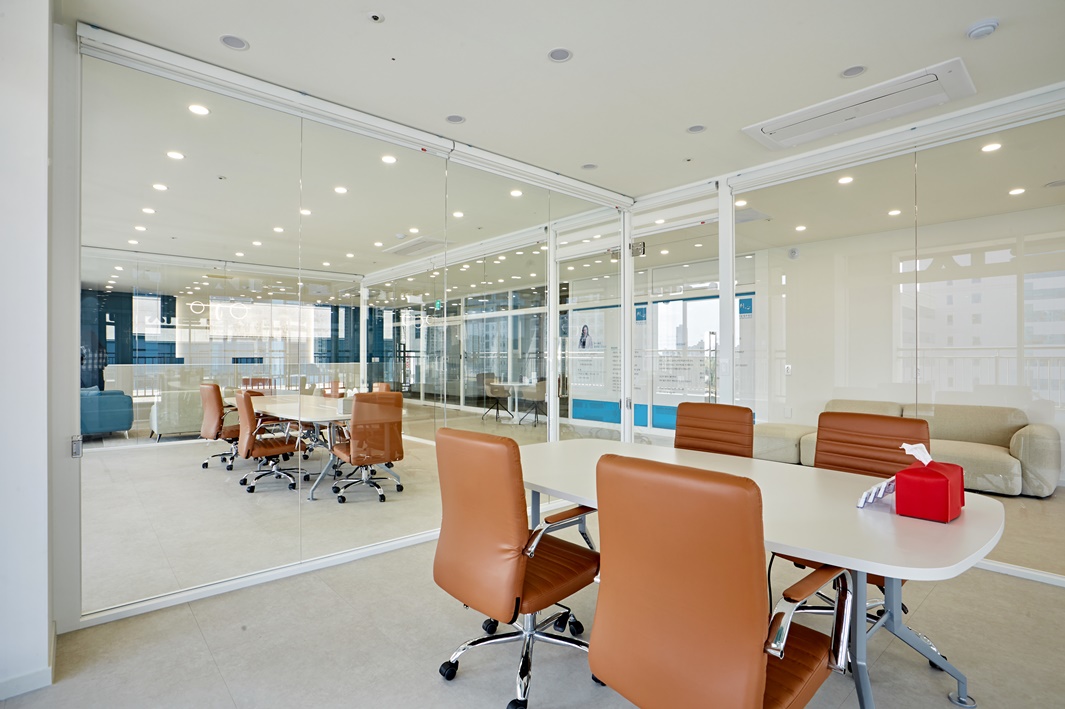 유리가벽은 소음 제어와 프라이버시 보장에 탁월한 기능을 가지고 있습니다.