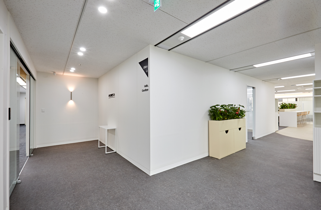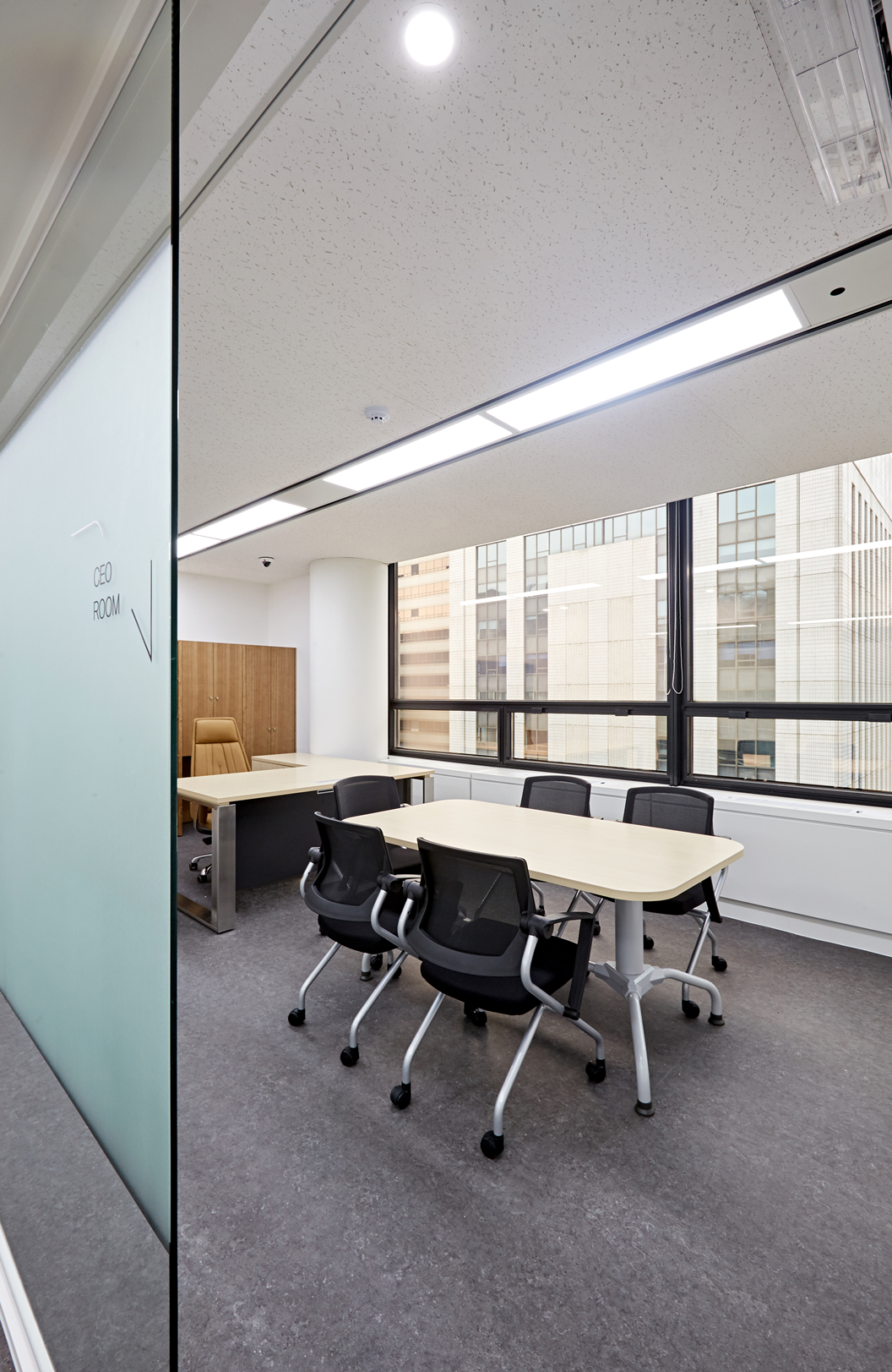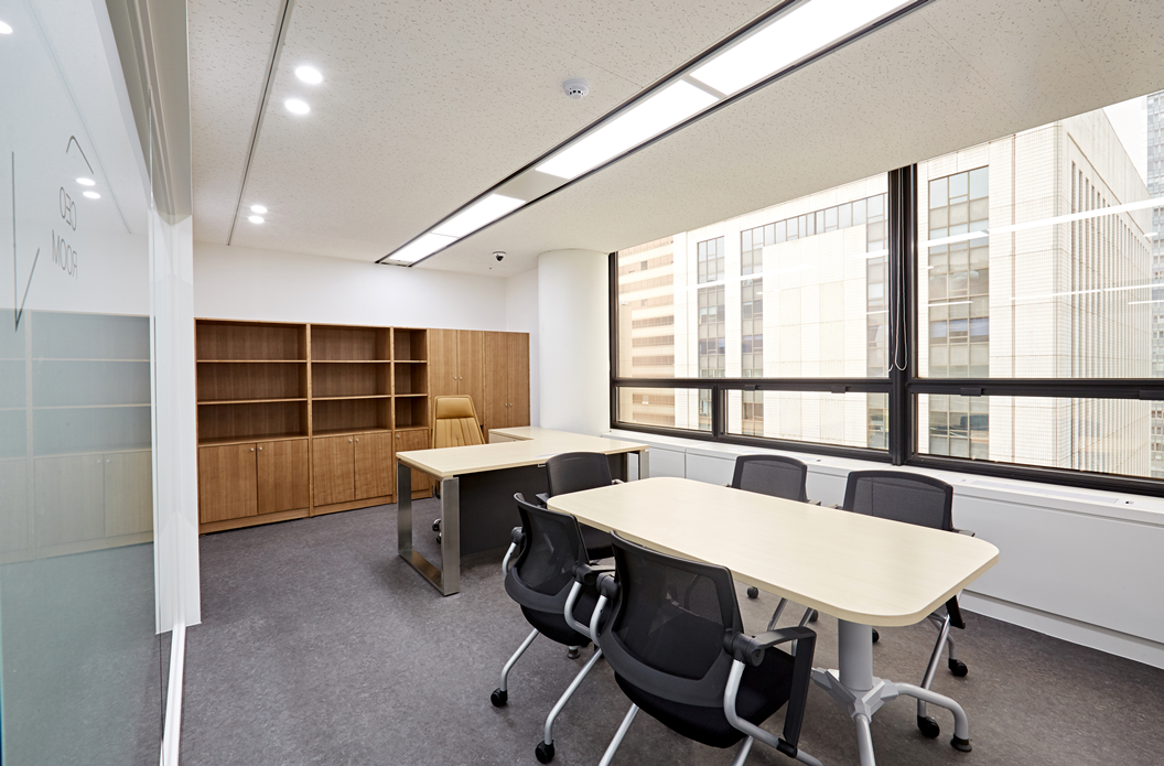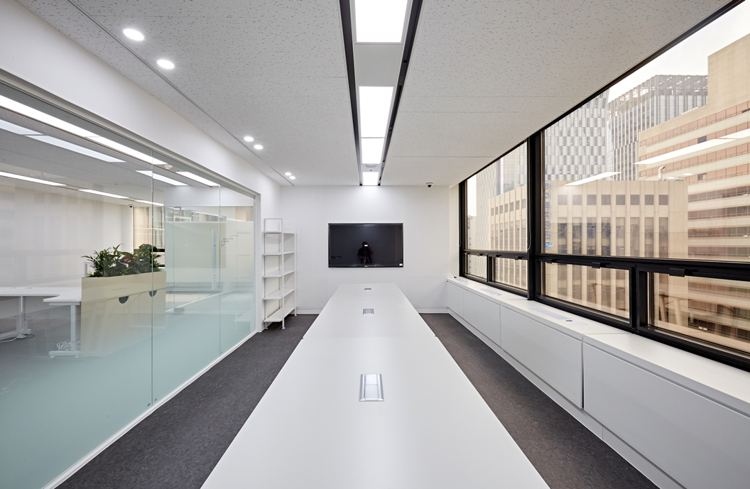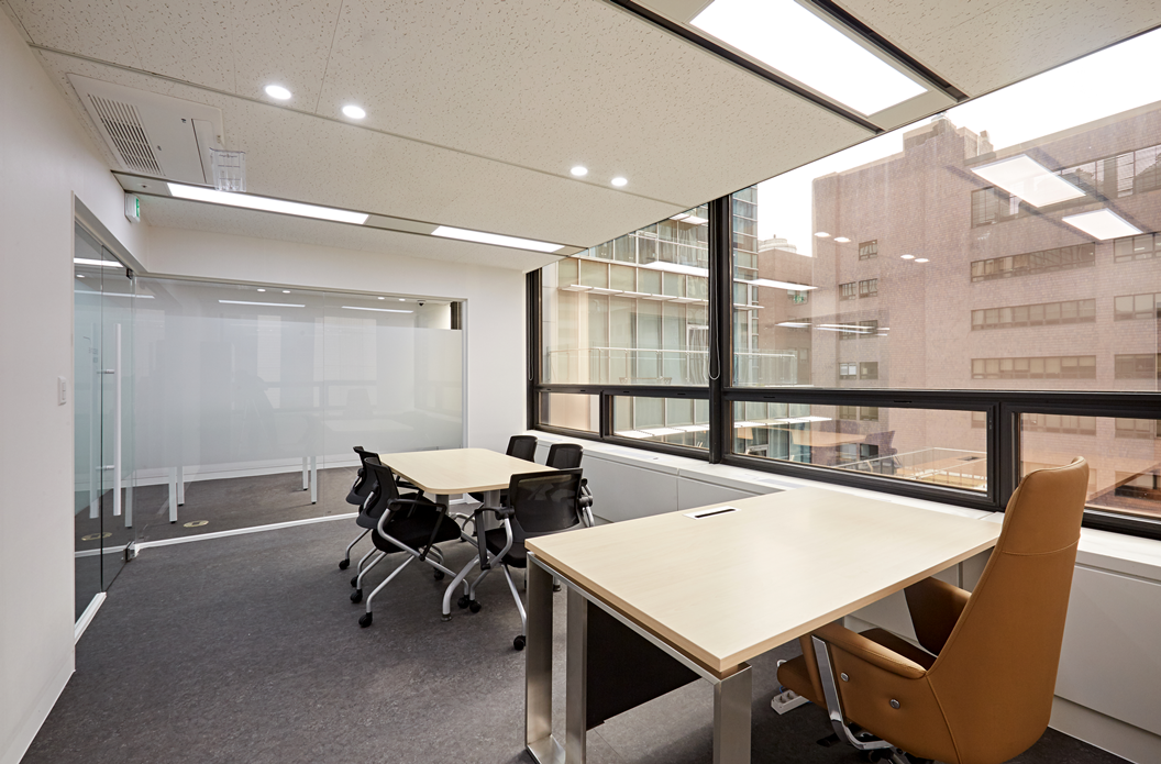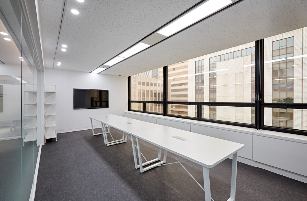 가장 일반적인 형태의 사무실에서는 유리가벽을 활용하여 업무 공간과 회의실, 휴게실 등을 구분할 수 있습니다.