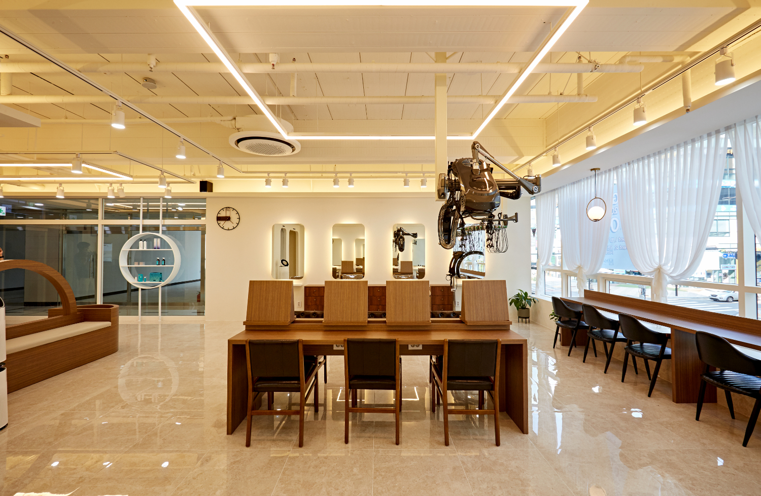 또한 외부에서 내부가 훤히 보이는 구조는 심미적으로도 좋지만 해당 가게에 대한 신뢰성을 높여줄 수 있는데요. 손님이 얼마나 많은지, 혹은 어떤 시술을 어떻게 하는지를 볼 수 있기 때문에 소비자 입장에서는 더욱 믿음직스러운 공간이 됩니다.