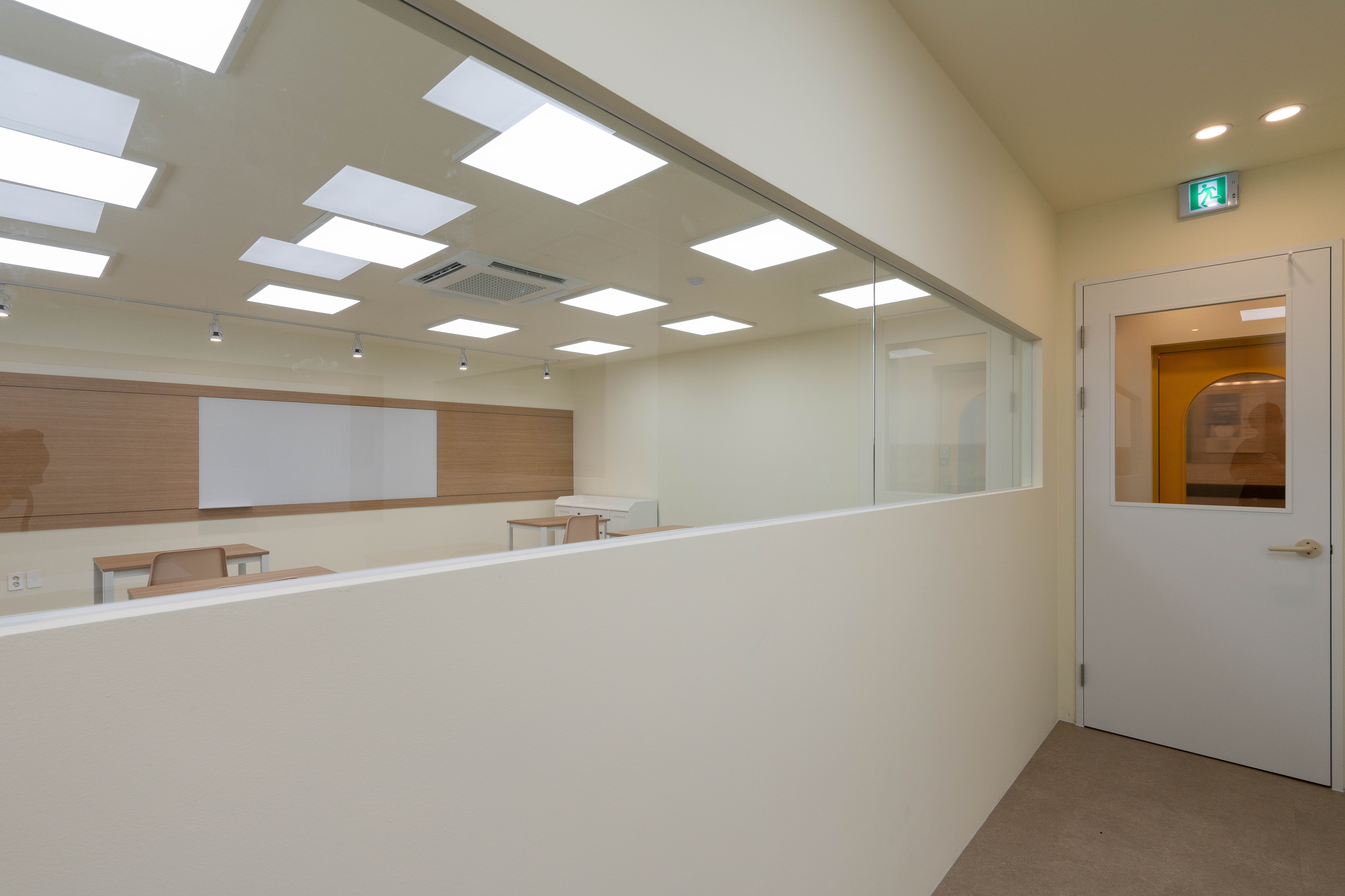 강의실 내부는 아이보리 컬러의