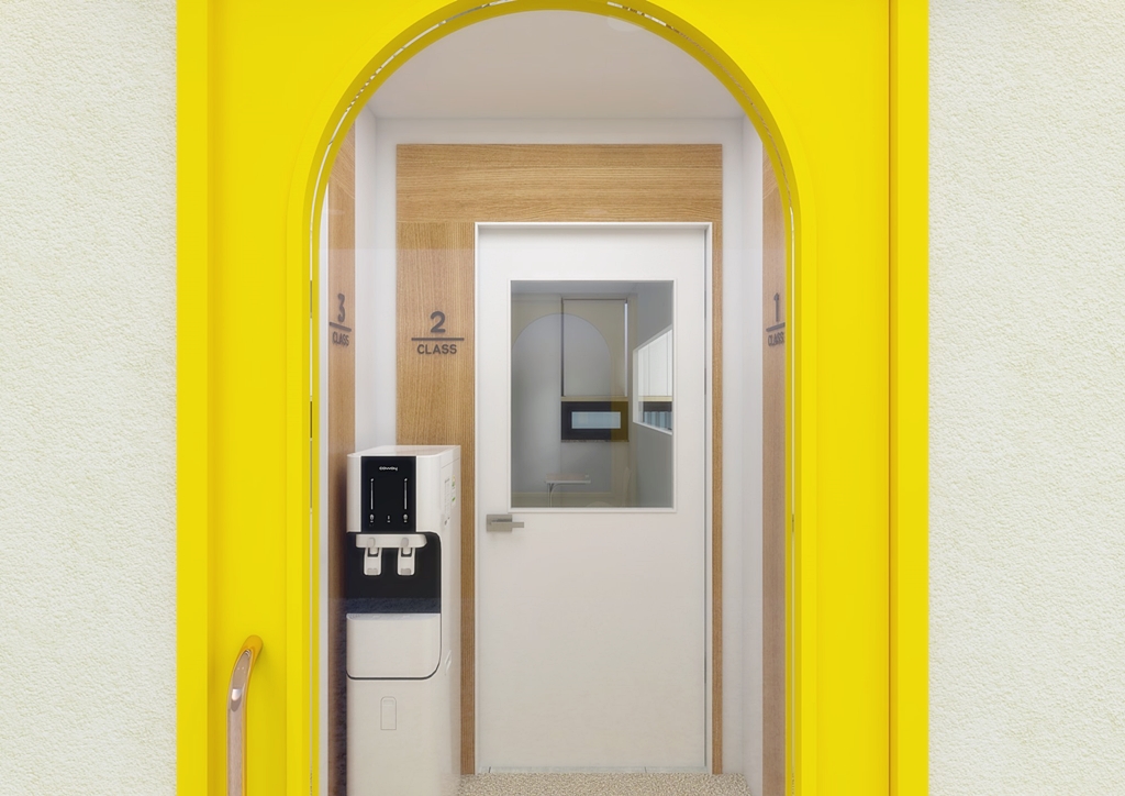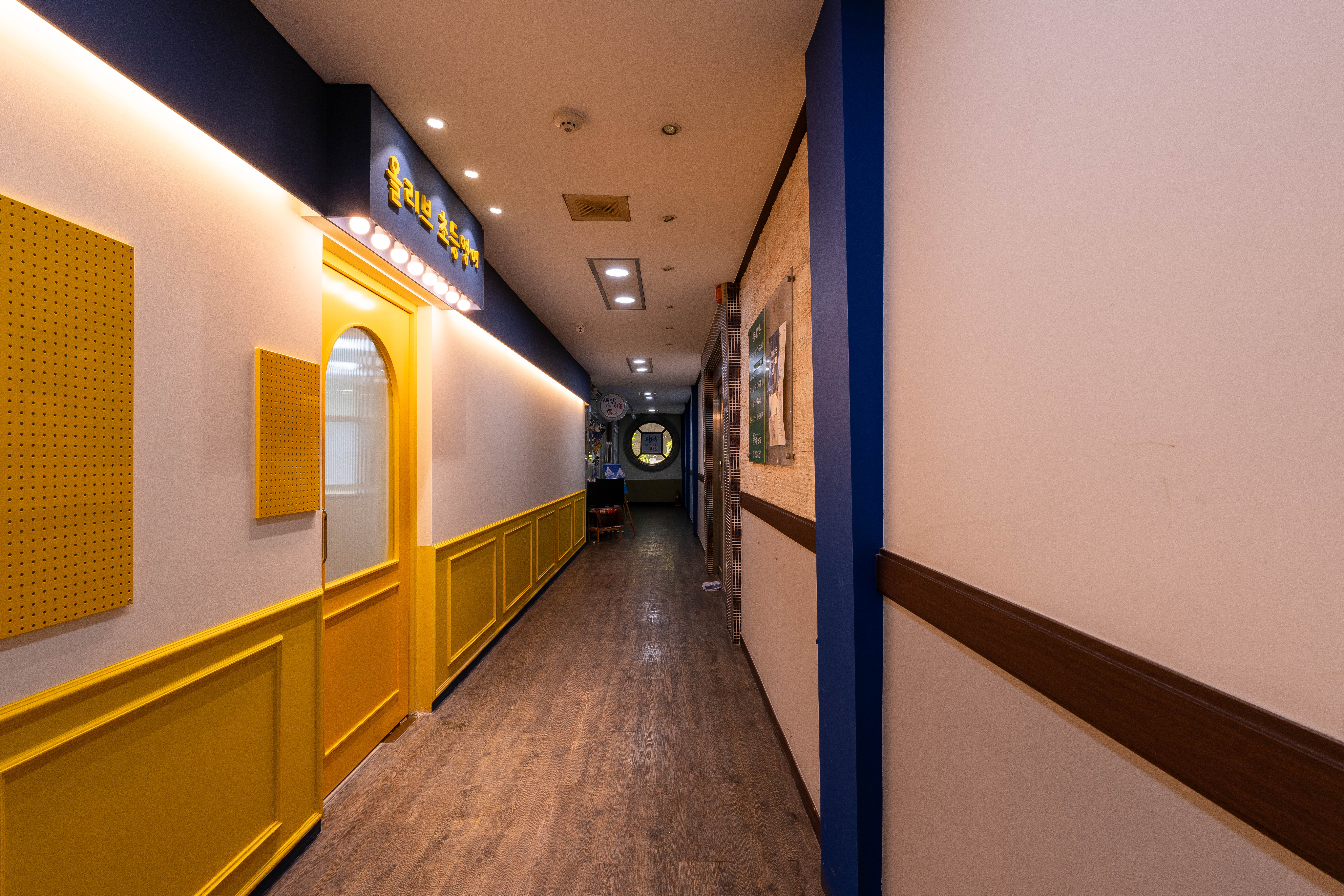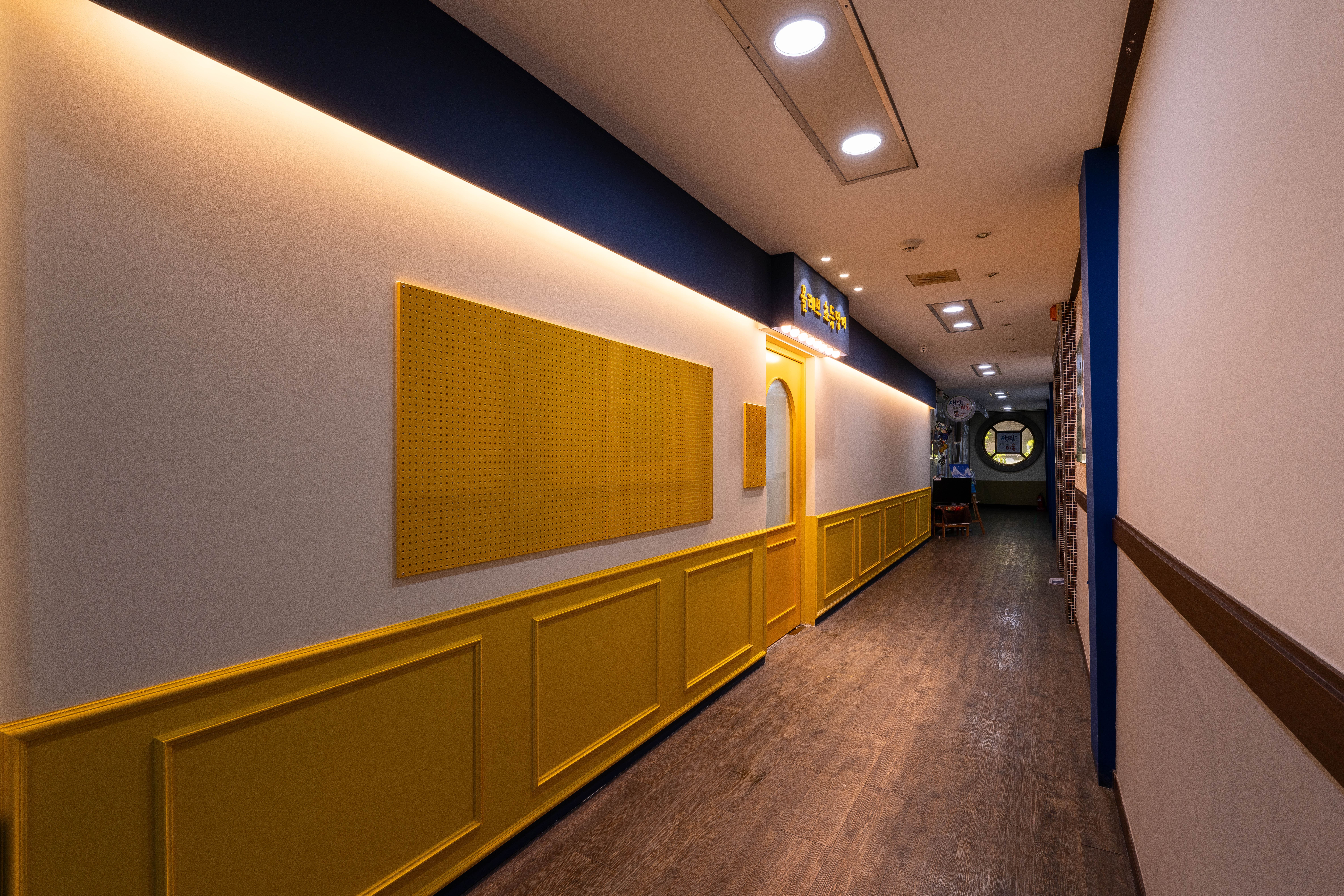 복도의 벽면은 화이트 & 옐로우