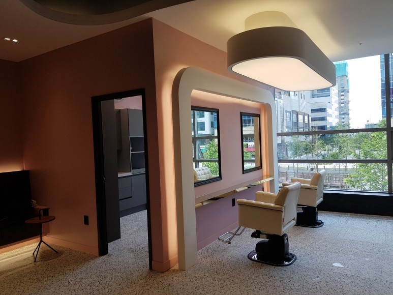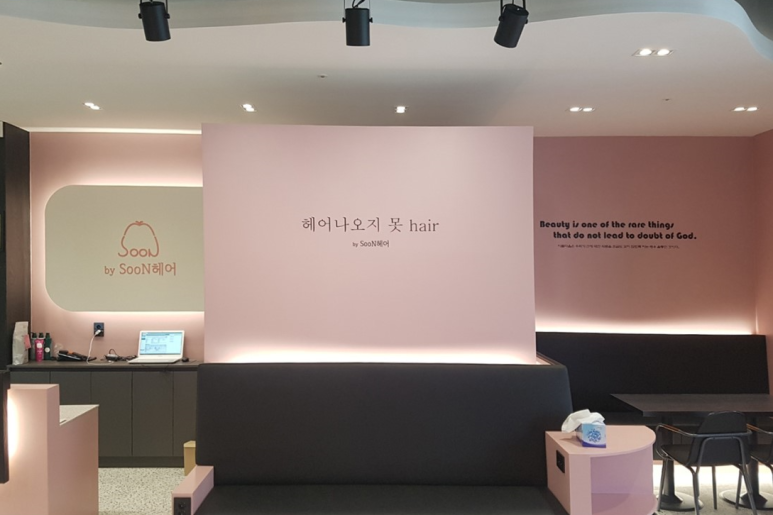 일산 고양 부천 미용실인테리어, 핑크컬러 헤어샵 디자인 설계 및 공사 후기