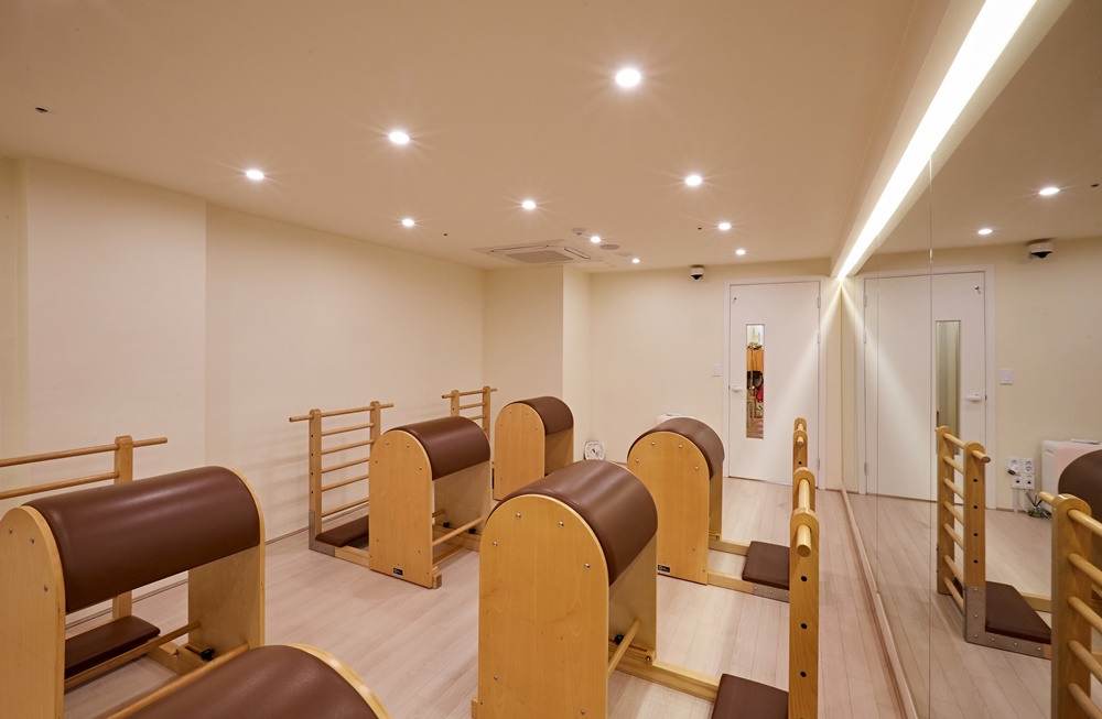 모든 룸에는 거울을 설치해 자세를 정확하게 확인하고 자신의 몸 상태를 점검할 수 있도록 하면서 동시에 공간이 넓어 보이는 효과를 주었습니다. 천장에 레일 조명과 매립형 조명을 함께 시공해 밝고 화사한 공간이 되도록 했으며 은은하고 부드러운 색감의 전구를 적용해 편안하고 안정적인 분위기에서 운동을 할 수 있도록 환경을 조성했습니다.