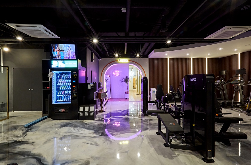최근 피트니스 센터의 트렌드는 두 가지 종목을 하나의 시설에서 이용할 수 있는 것인데요, 그래서 각 종목을 분리하되 디자인 통일을 이루고 그에 맞는 인테리어를 꾸미는 것에 더욱 신경을 써야 한답니다. 이 곳 역시 헬스장과 필라테스를 함께 운영하는 센터여서 헬스장의 메인 컬러는 블랙을 설정하고 필라테스장의 메인 컬러는 화이트로 설정해 반전 분위기를 연출하도록 했습니다.