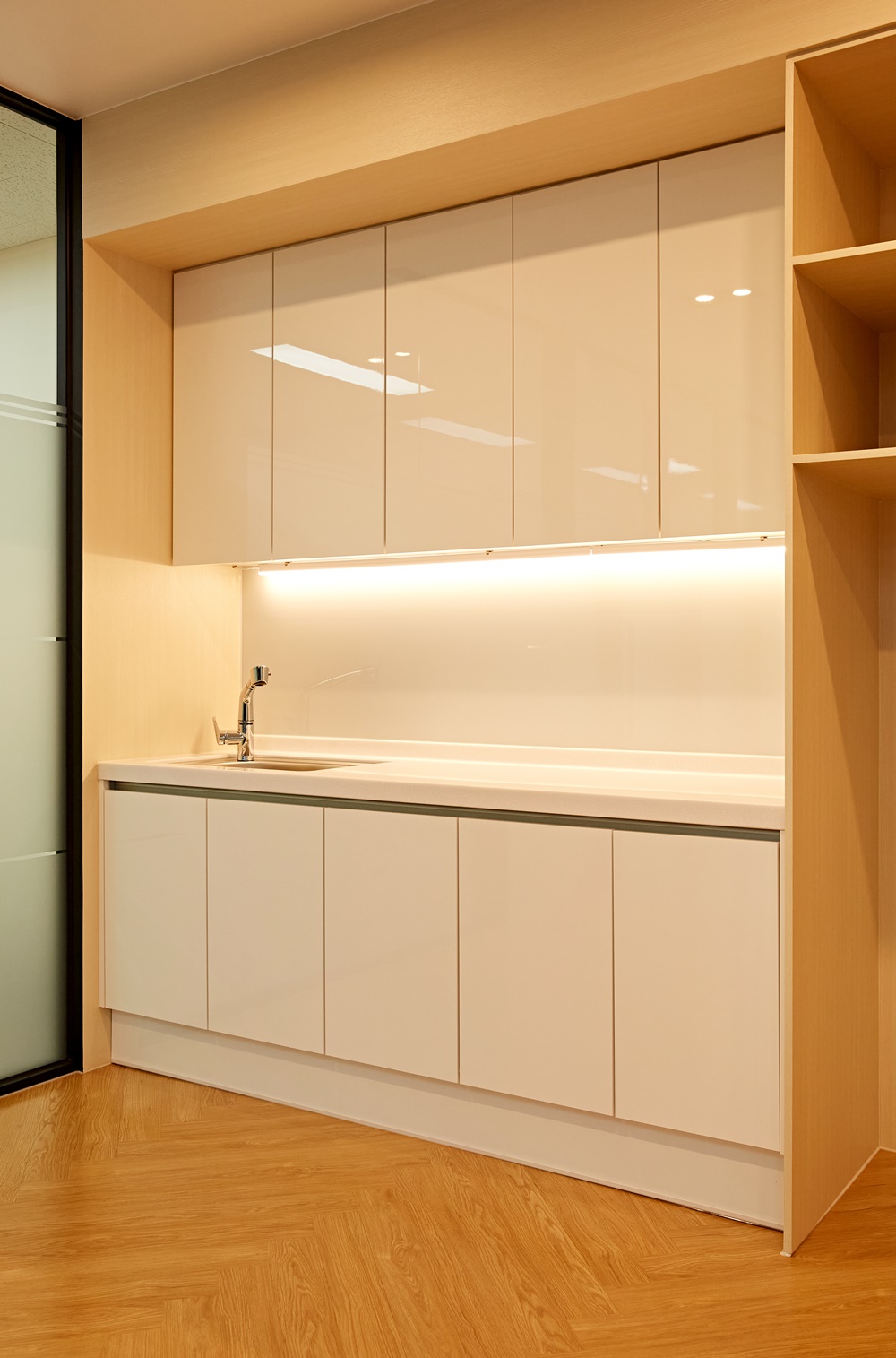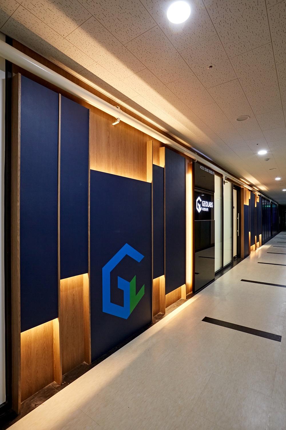 조명을 활용해 입구의 벽을 독특하게 밝힌다면 사무실인테리어를 돋보이게 만들 수 있는데요.