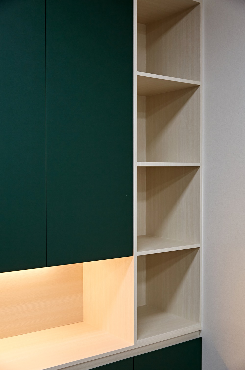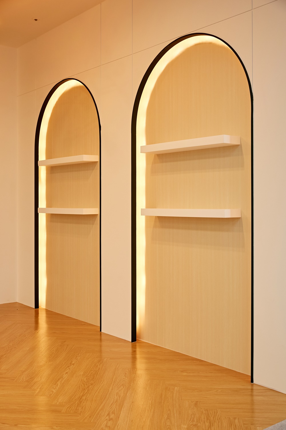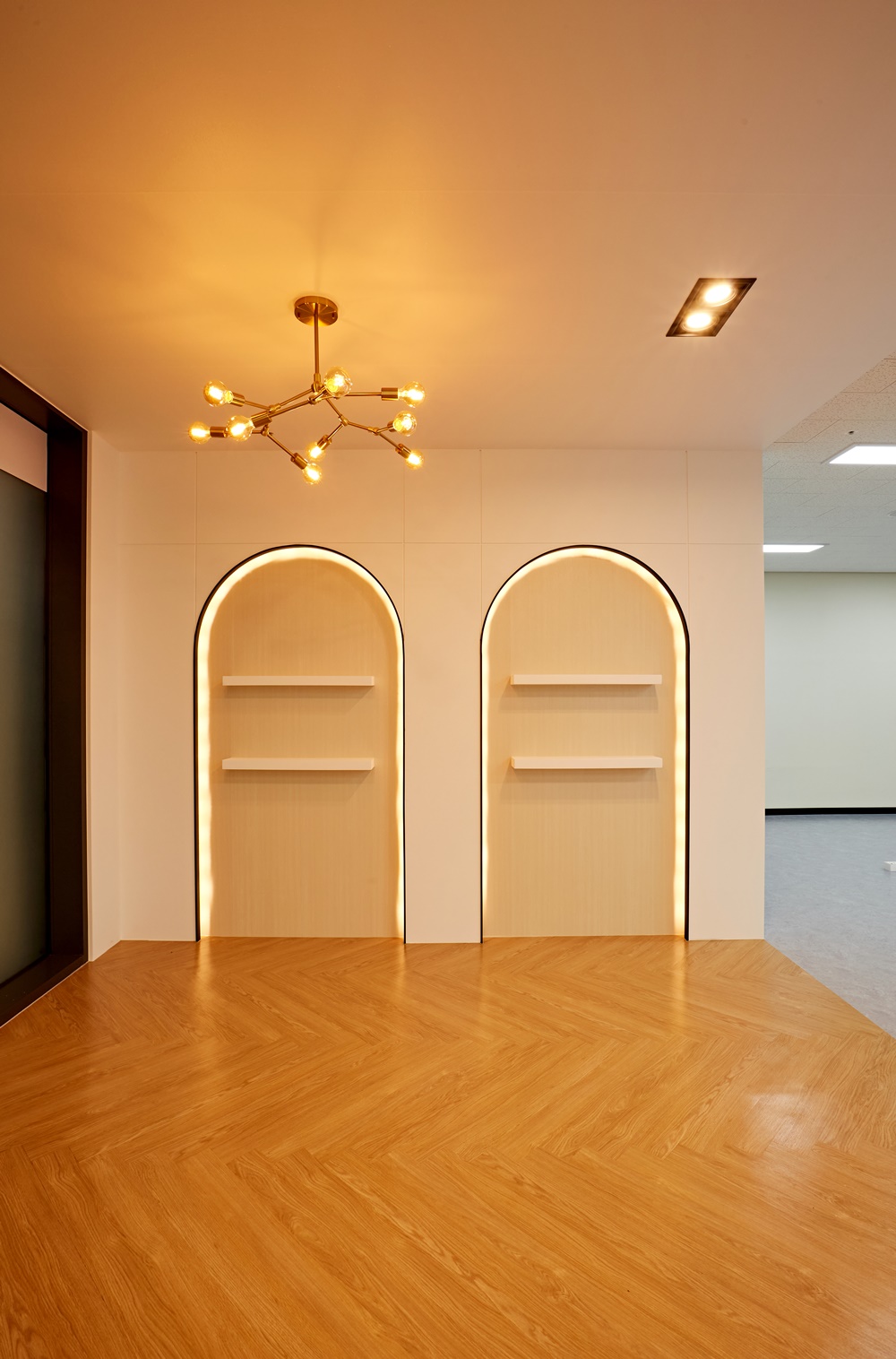 벽을 비추는 간접 조명은 공간을 더욱 넓고 밝게 보이게 해줍니다.
