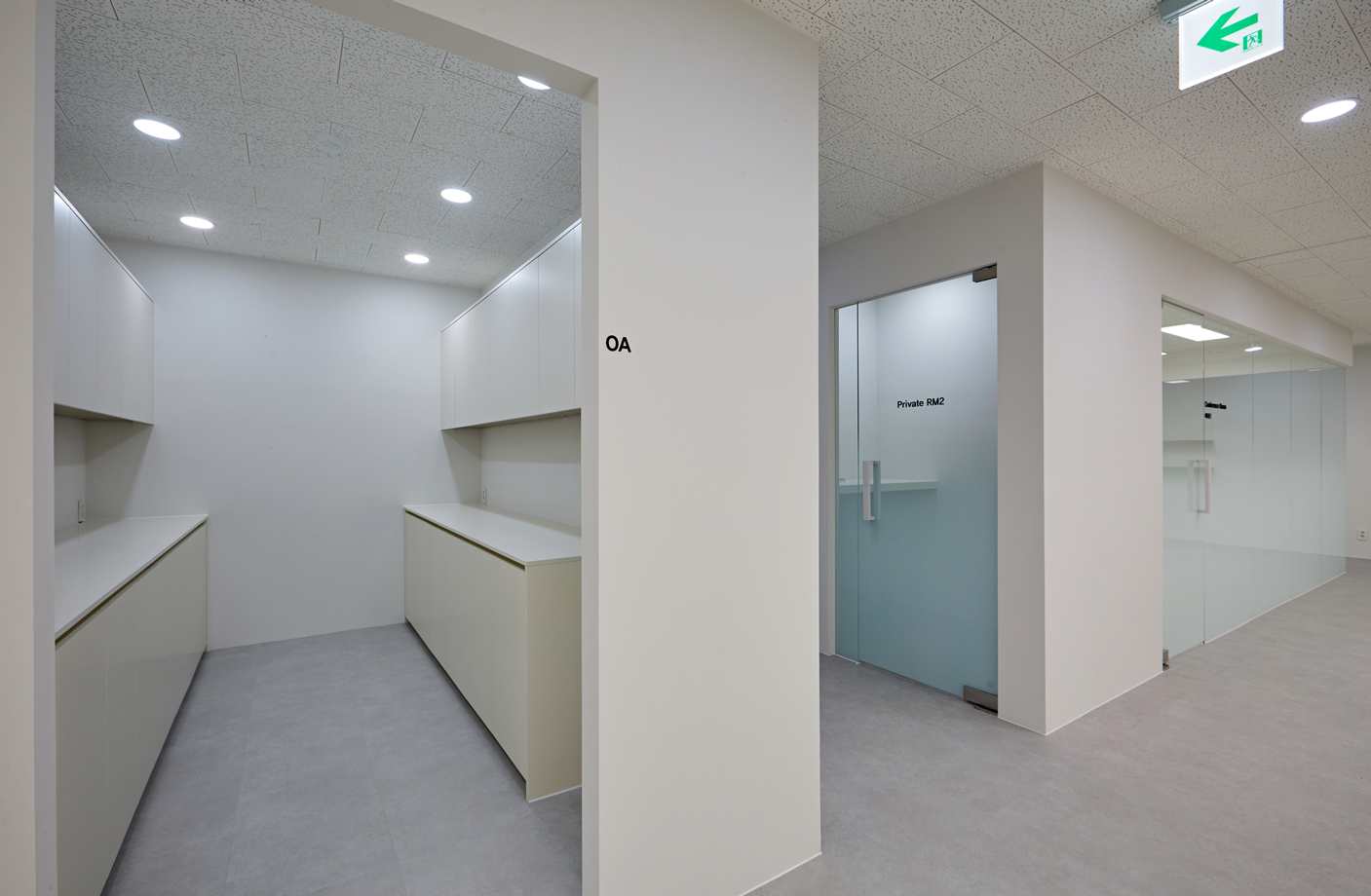 화이트 톤의 환하고 깔끔한 사무공간과 유리가벽 회의실 및 개별 공간 등 공간별로 목적과 기능을 최적화하면서