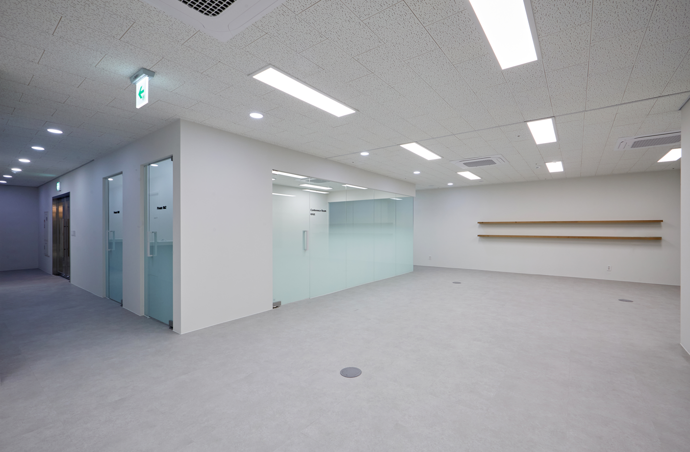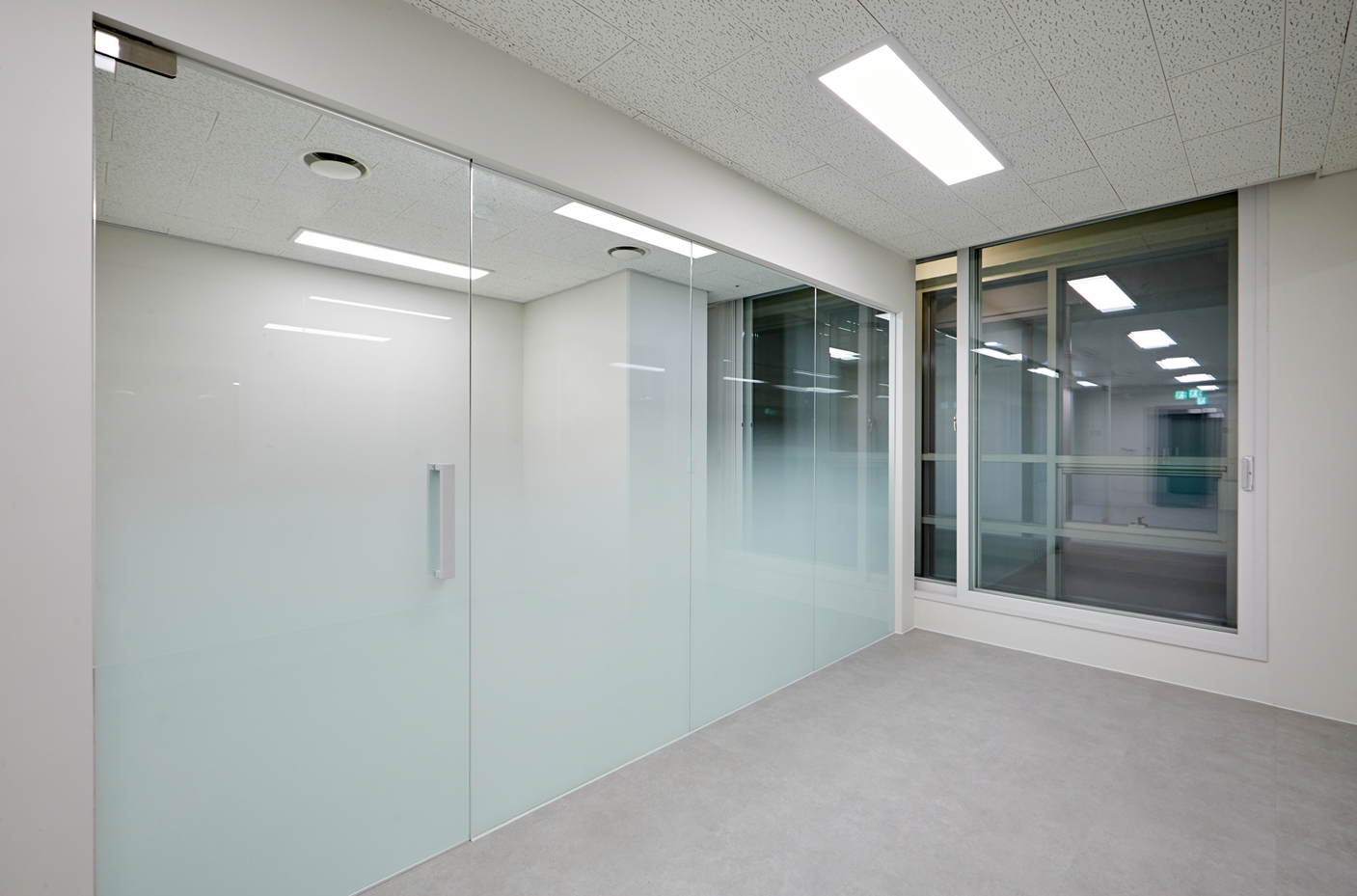 회의실은 유리가벽을 활용하여 개방감을 유지하면서도 회의 진행 시 집중력을 높일 수 있도록 설계했습니다.