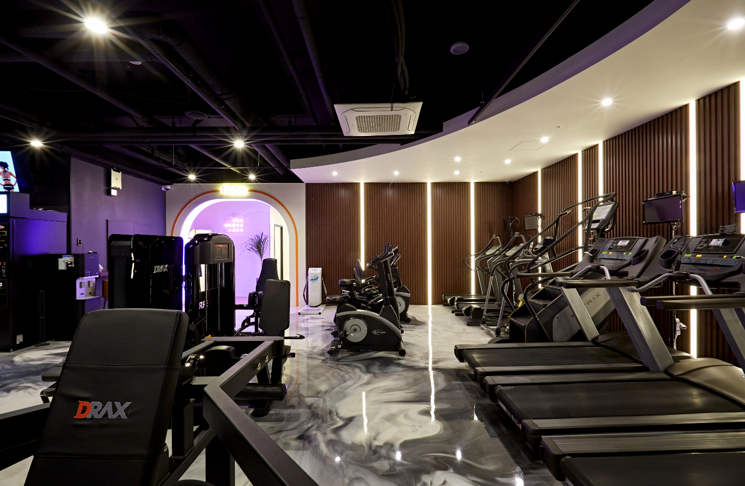 동탄 기흥 여주 헬스장인테리어 아치형 도어와 곡선 마감으로 부드러운 분위기 연출