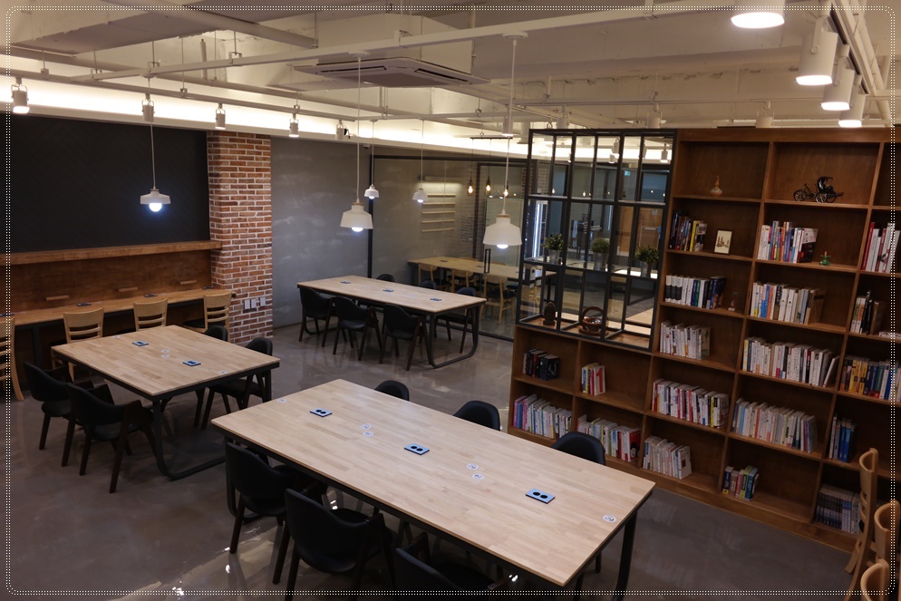 통합형 공간으로 조성한 독서실로 개별 좌석 및 대형 테이블이 배치되어있고 스터디를 할 수 있는 독립룸까지 갖췄으며 음료수를 마실 수 있는 작은 휴식 공간도 함께 구성한 곳입니다.