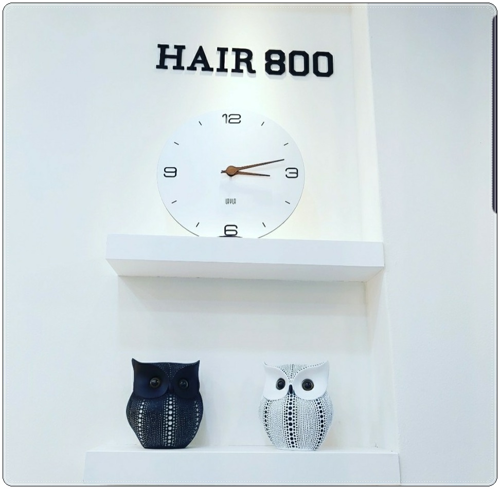 깔끔한 무지 화이트 선반에 귀여운 부엉이 소품과 시계 그리고 매장 이름을 넣어 아기자기한 포인트를 넣은 모습입니다.