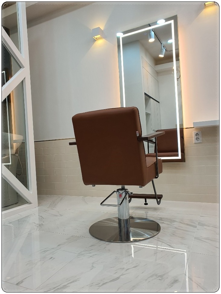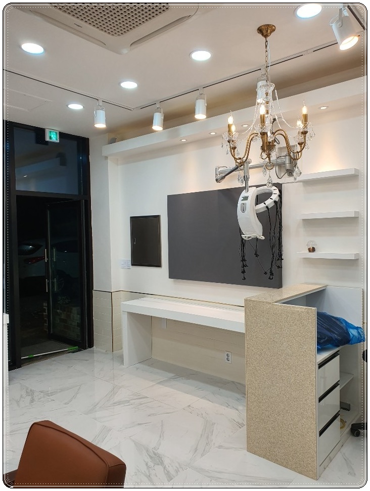 미용 시술을 받을 의자의 경우 브라운 컬러의 제품으로 넣어 화이트 모던 인테리어에 아늑하고 따스함을 보여주고 있습니다. 그로 인해 내추럴한 분위기도 만나 보실 수 있습니다.