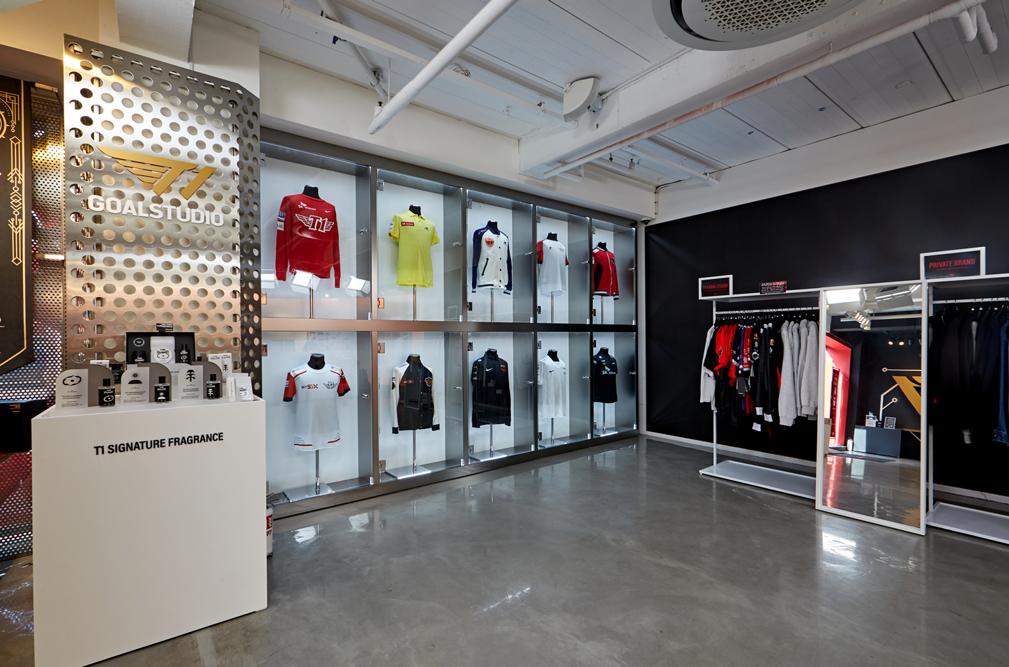 이곳은 브랜드 굿즈들이 한눈에 들어오도록 제품 자체가 빛의 중심이 되도록 조명과 레이아웃 설계에 신경써서 연출하였습니다.