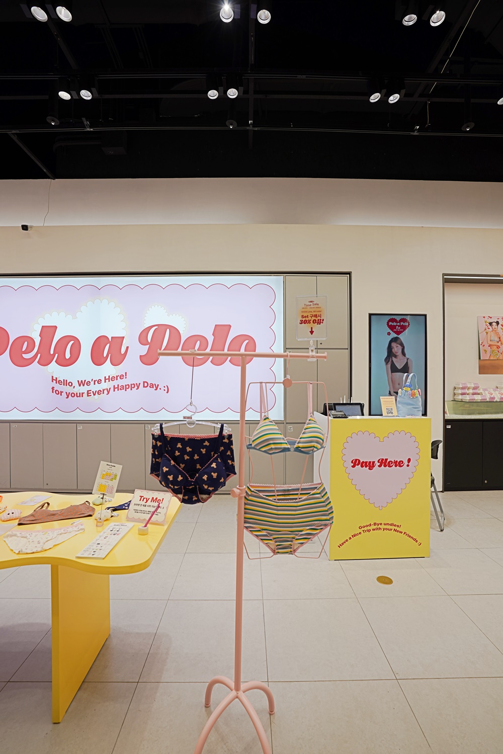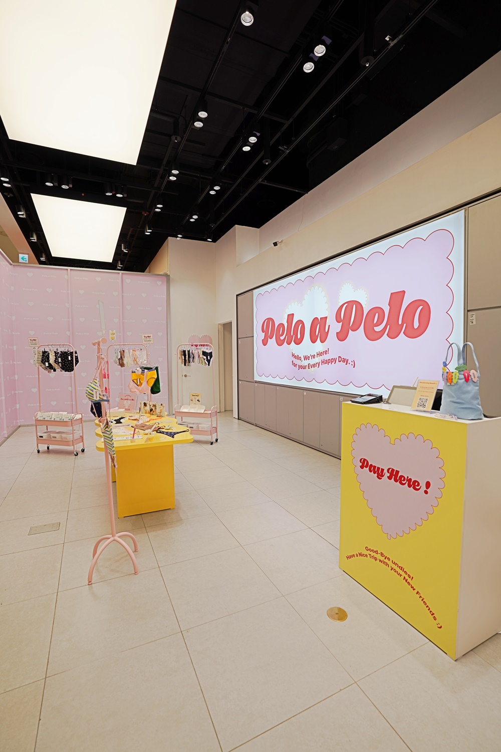 벽면과 안내판에 ‘Pelo a Pelo’ 로고와 메시지를 귀엽고 친근한 타이포그래피와 하트 모양 그래픽으로 배치하여 브랜드만의 독특한 감성을 강하게 전달할 수 있도록 했어요.
