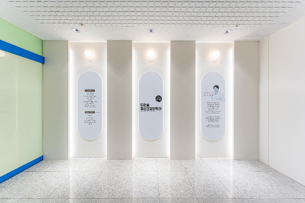 정신의학과 병원인테리어 안정감과 세련됨이 나타는 공간연출에