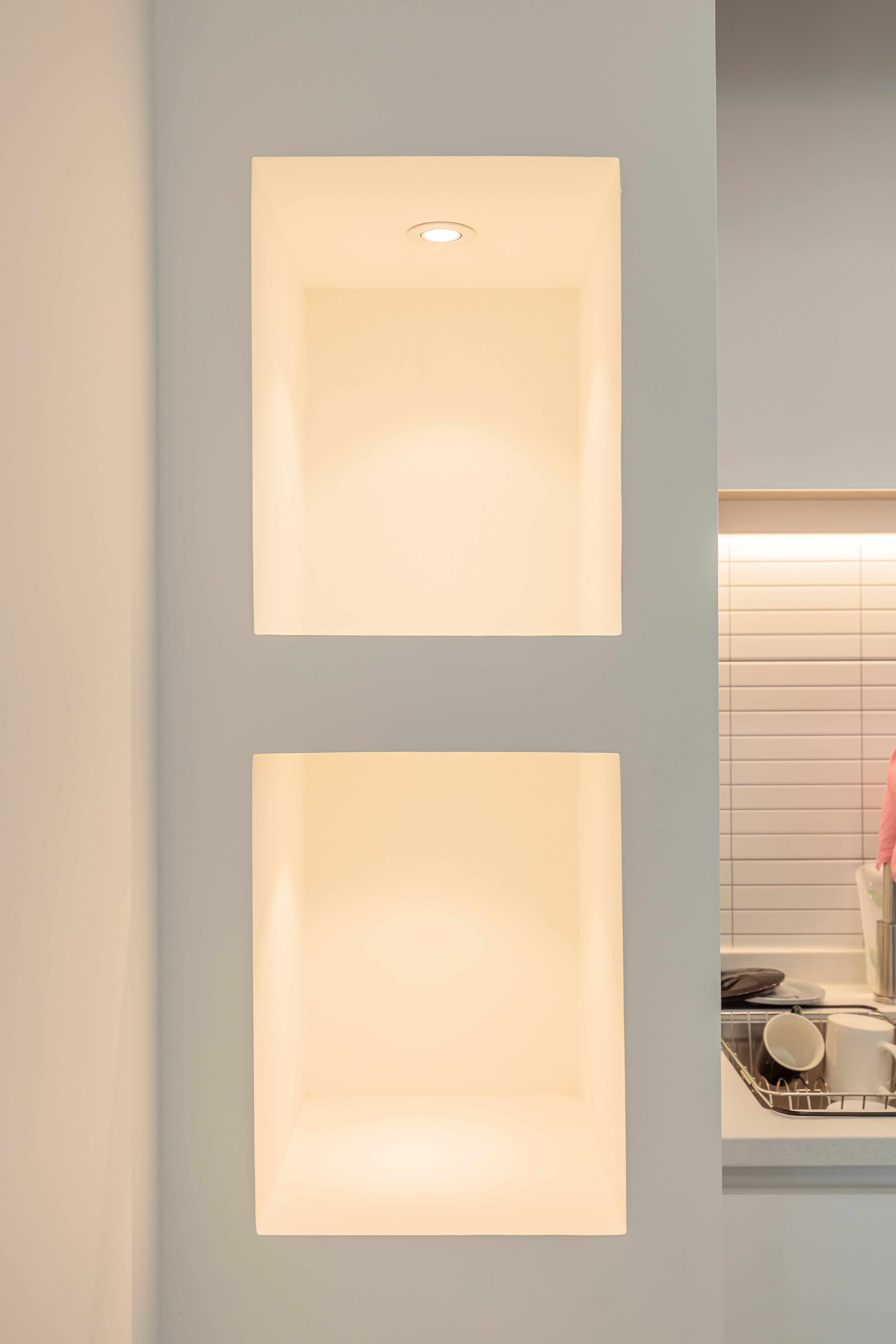벽에 내장된 형태의 인테리어를 진행해드렸습니다.